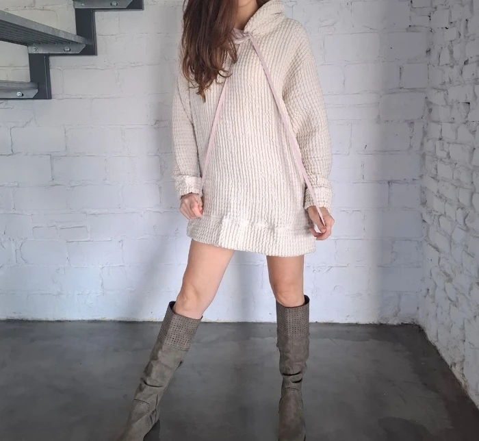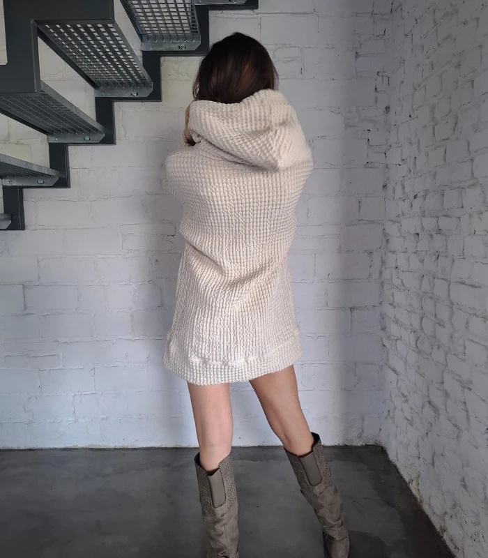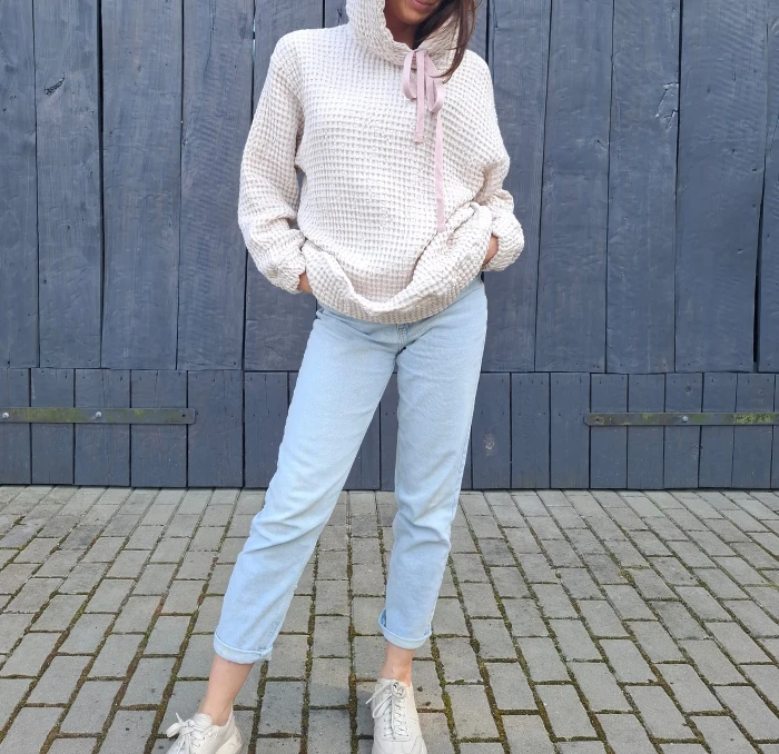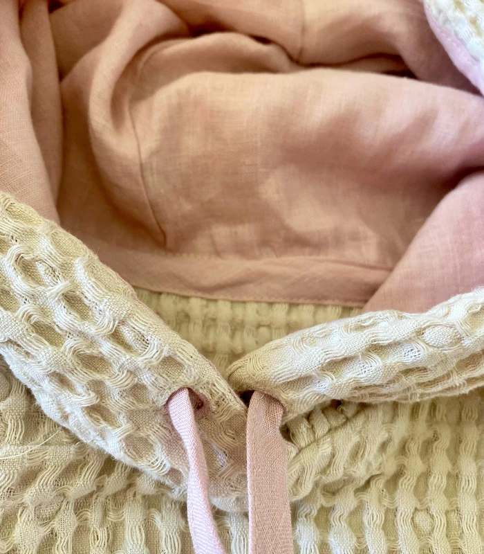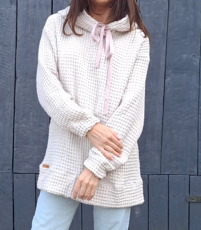 Bluza unisex z kapturem z tkaniny typu wafel – len & bawełna