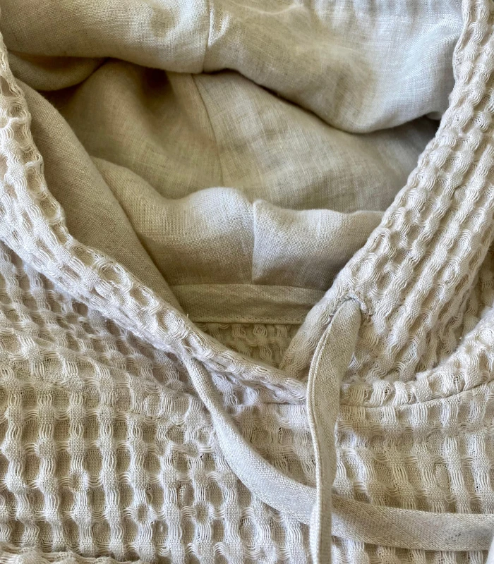 Bluza unisex z kapturem z tkaniny typu wafel – len & bawełna