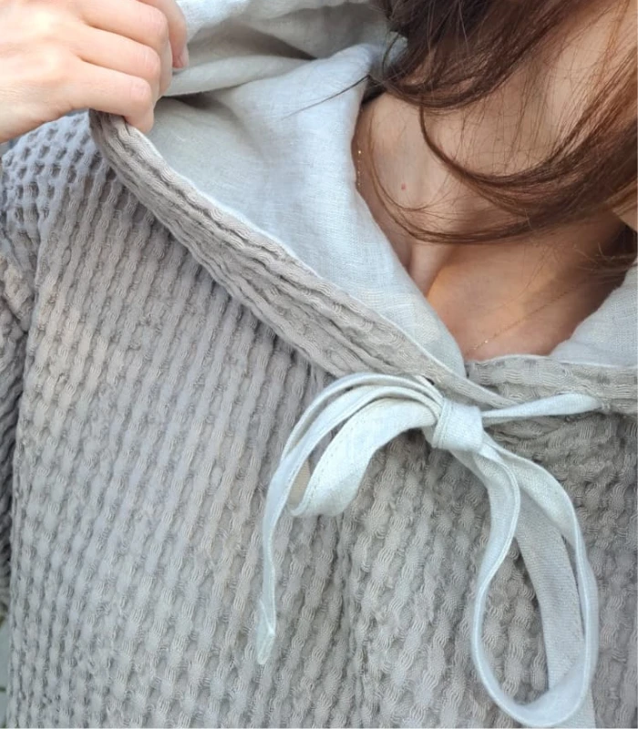 Bluza unisex z kapturem z tkaniny typu wafel – len & bawełna