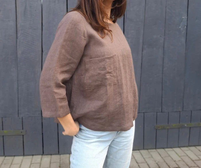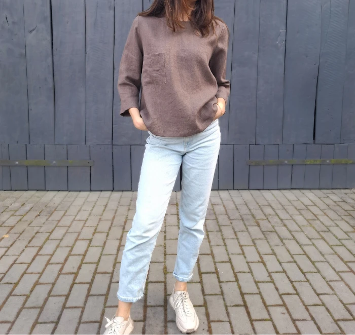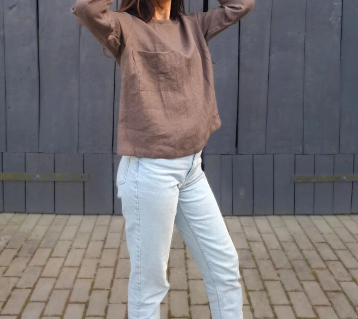 Naturalność, elegancja i ponadczasowy fason – ta bluzka łączy wszystko, czego możesz oczekiwać od idealnej bazy w garderobie. Wykonana w 100% z wysokogatunkowego lnu o gramaturze 205 g, zapewnia komfort noszenia i doskonałą jakość na lata. Prosty, klasyczny krój został uzupełniony subtelnymi detalami: dekoltem wykończonym pliską, rękawem 3/4 oraz naszywaną kieszonką na wysokości piersi. Ten model z łatwością zastąpi klasyczny T-shirt z długim rękawem, wnosząc do codziennego stylu więcej elegancji i lekkości. Świetnie sprawdzi się zarówno solo, jak i jako warstwa pod marynarkę czy sweter. Noś ją z jeansami, szortami, cygaretkami lub spódnicą – niezależnie od zestawienia, zawsze będzie wyglądać stylowo i naturalnie.