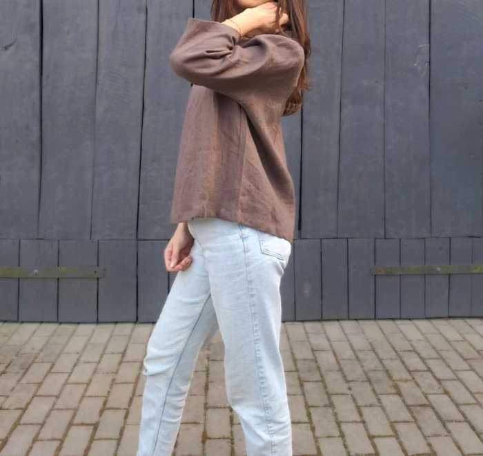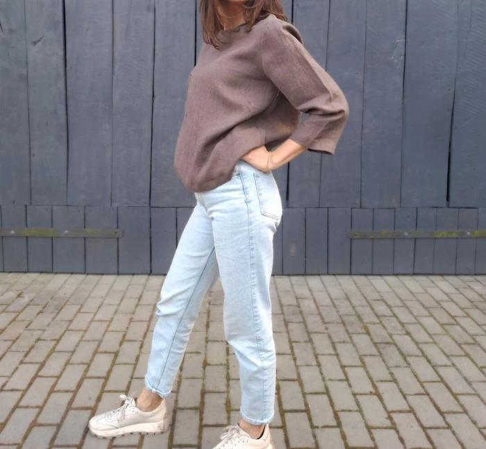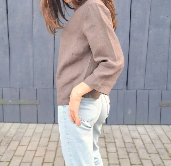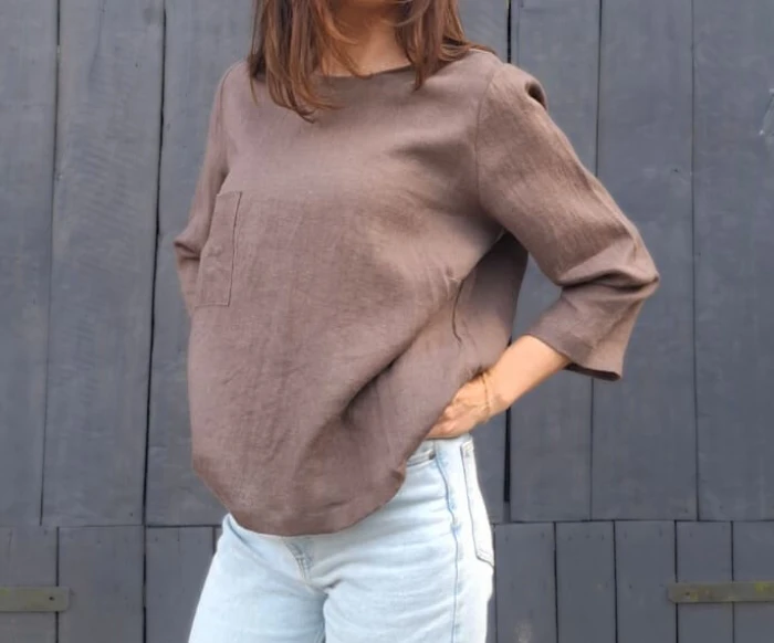 Lniana bluzka z rękawem 3/4 – naturalność w eleganckim wydaniu.