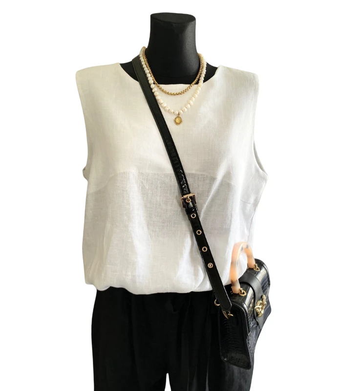 BLUZKA lniana bez rękawów, TOP LNIANY damski , LEN 100% , BIAŁA