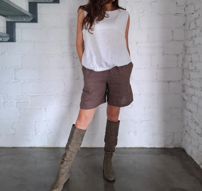 Bluzka lniana bez rękawów, top damski - LEN 100%
