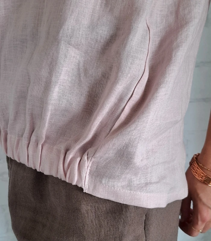Wygodna, a zarazem elegancka nasza propozycja bluzki na lato jak również idealnego topu pod marynarkę, gdy latem obowiązuje Cię biurowy styl. Bluzki zostały wykonane w trzech kolorach: białym, subtelnym różu i zieleni awokado z tkaniny 100% lnianej o gramaturze 130 g i 205 g.