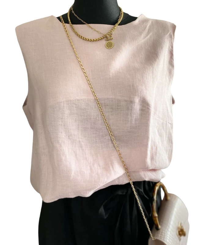 BLUZKA lniana bez rękawów, TOP LNIANY damski , LEN 100% , MGLISTY RÓŻ