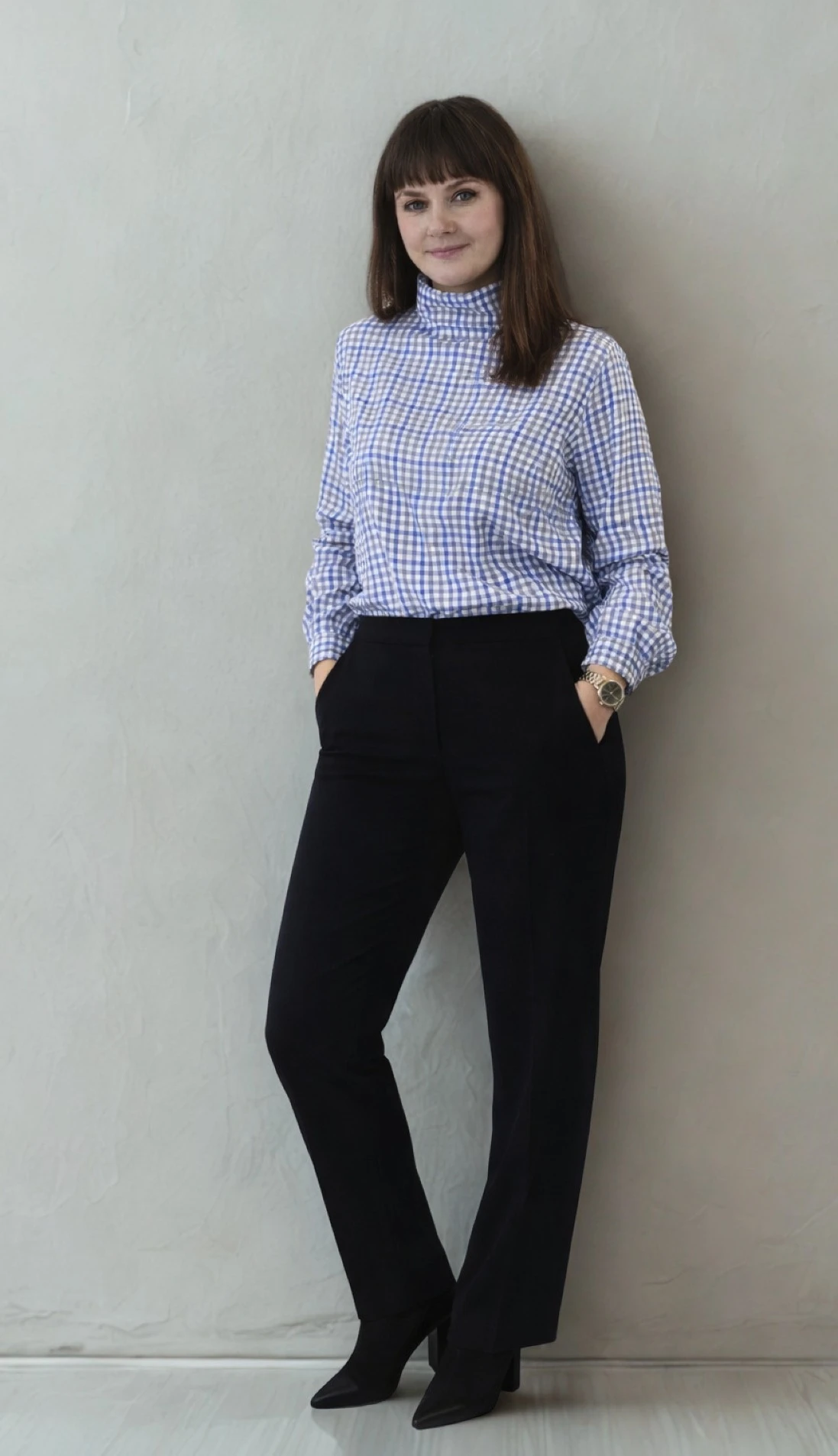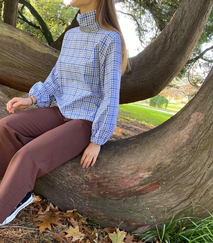 Bluzka w kratę wiązana z półgolfem