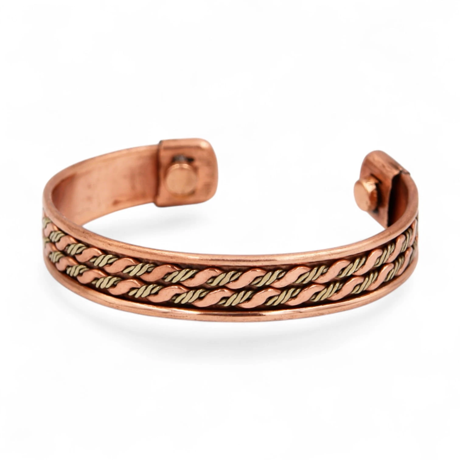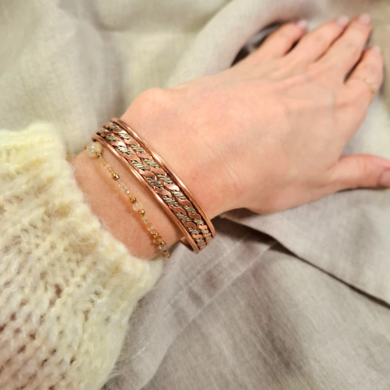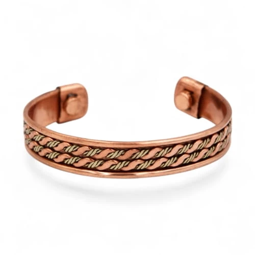 Oryginalna miedziana bransoletka damska wykonana z czystej miedzi bez domieszek niklu. Dla wzmocnienia efektu prozdrowotnego w bransoletce są zamontowane magnesy neodymowe. Wzór na bransoletce jest dyskretny i elegancki. Klientki które na co dzień noszą biżuterię miedzianą zauważyły poprawę samopoczucia, mniejsze zmęczenie i wzrost energii.