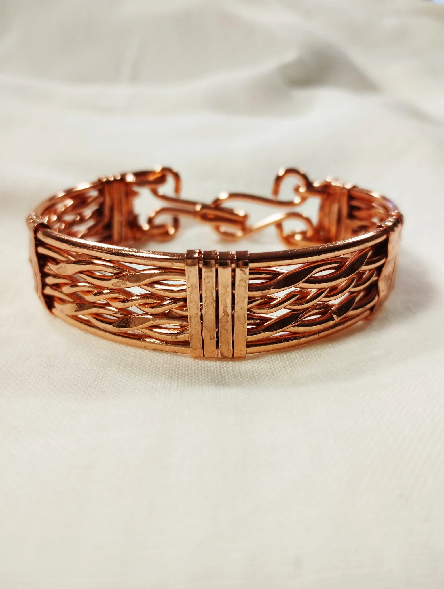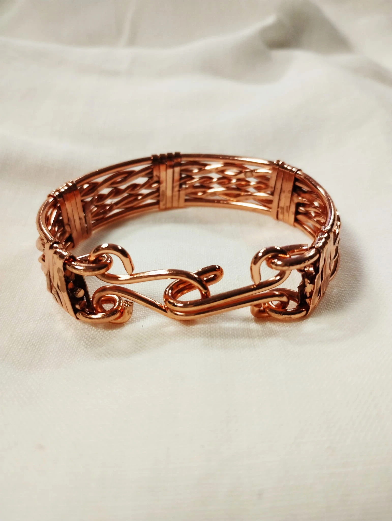 Oryginalna miedziana bransoletka damska wykonana z czystej miedzi bez domieszek niklu. Wzór na bransoletce jest dyskretny i elegancki. Klientki które na co dzień noszą biżuterię miedzianą zauważyły poprawę samopoczucia, mniejsze zmęczenie i wzrost energii.