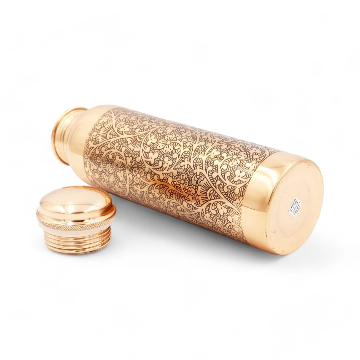 Butelka miedziana grawerowana z klasycznym tradycyjnym indyjskim wzorem. Każde wgłębione powstało za pomocą tradycyjnych narzędzi.