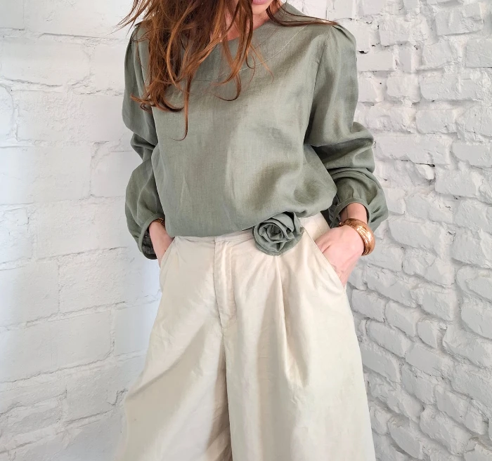 Sama bluzka świetnie sprawdzi się w eleganckim wydaniu z szerokimi spodniami typu palazzo czy ołówkową spódnicą. Bermudy, letnia torba i klapki w zestawieniu z tą koszulą zrobią idealny letni look, który przyciągnie wiele spojrzeń. Wskocz w dżinsy w swoim ulubionym fasonie, a resztę dopełni ta bluzka. Bo to ona zawsze będzie wyróżniała się z tłumu innych lnianych koszul poprzez swojej formę, szlachetność materiału i niesamowitą wygodę noszenia.