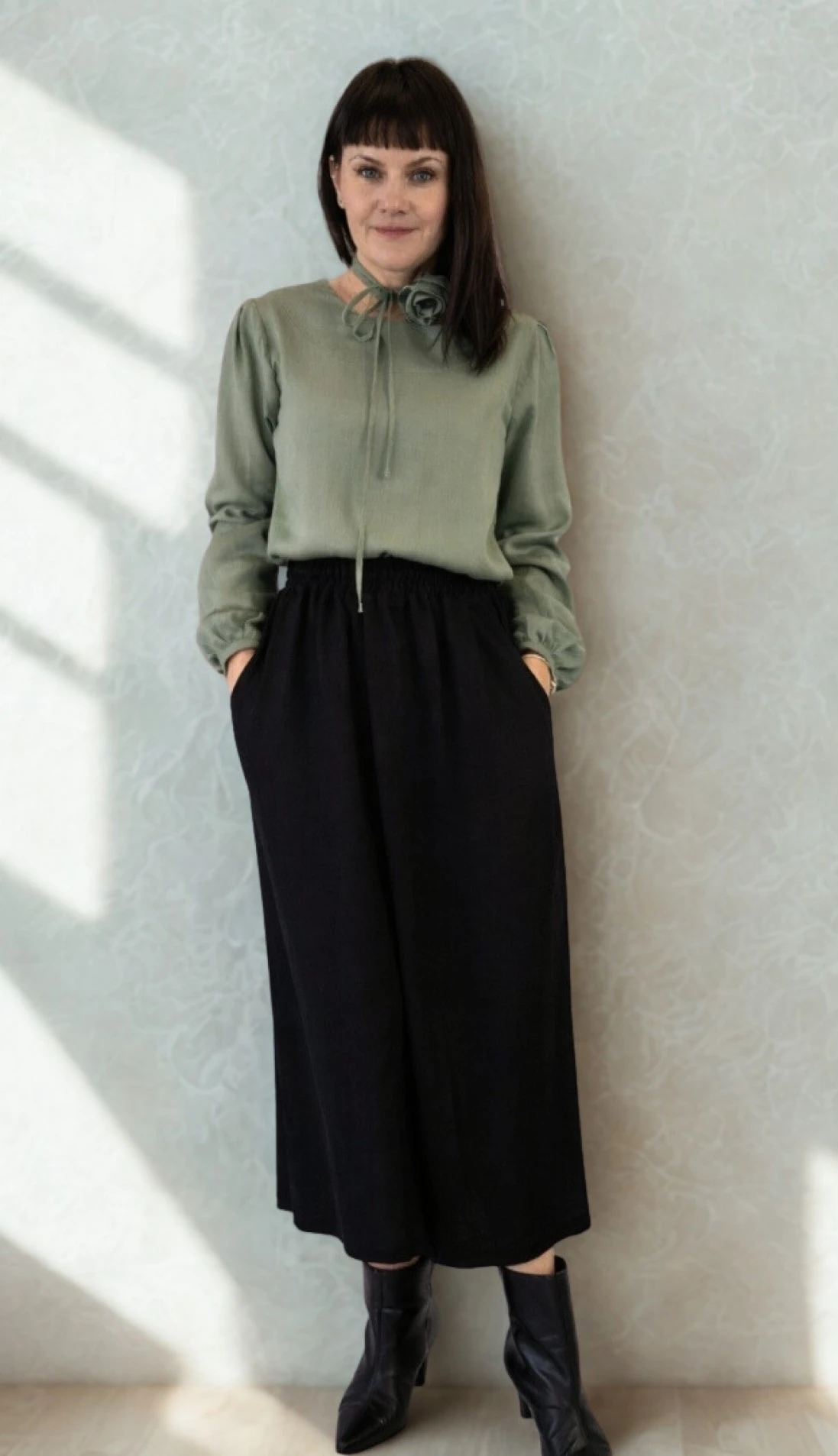 Każdy element tej kolekcji lnianej uszyty jest w ilości ograniczonej, tj. 1-2 szt. Zatem jest to produkt unikatowy, stworzony dzięki kreatywności naszej projektantki. Nie znajdziesz go w masowej produkcji, co jest gwarancją oryginalności i niepowtarzalnego stylu.