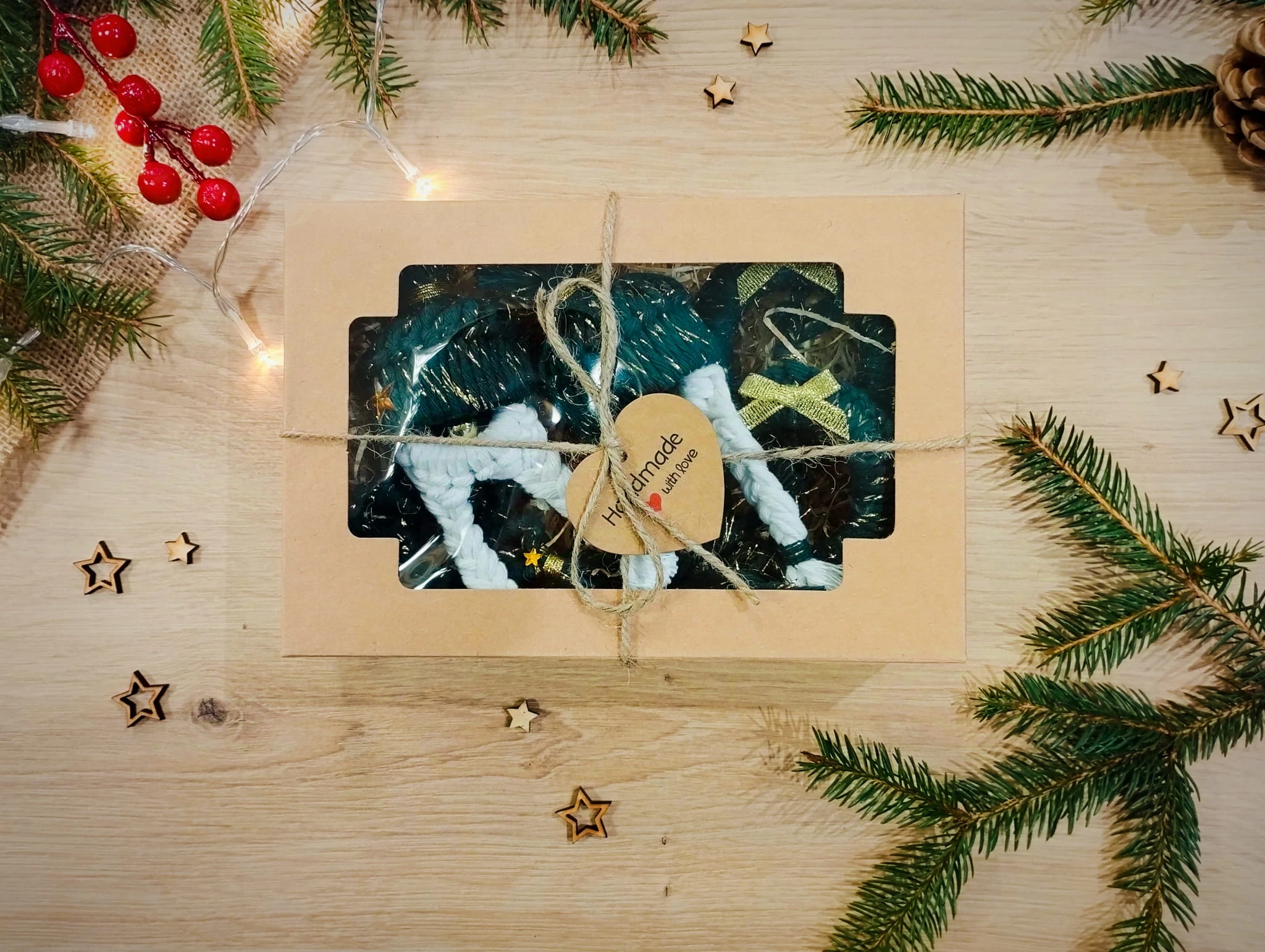 Zestaw sześciu zawieszek świątecznych, zapakowanych w ozdobne pudełko. Idealny box prezentowy, aby obdarować bliskie Ci osoby. Każda z zawieszek została wykonana ręcznie, z niezwykłą starannością o szczegóły. Bogata kolorystyka i różnorodność form, pozwoli nadać świąteczną atmosferę magii i ciepła każdemu wnętrzu. Ozdobią zarówno choinkowe gałęzie jak i okna.