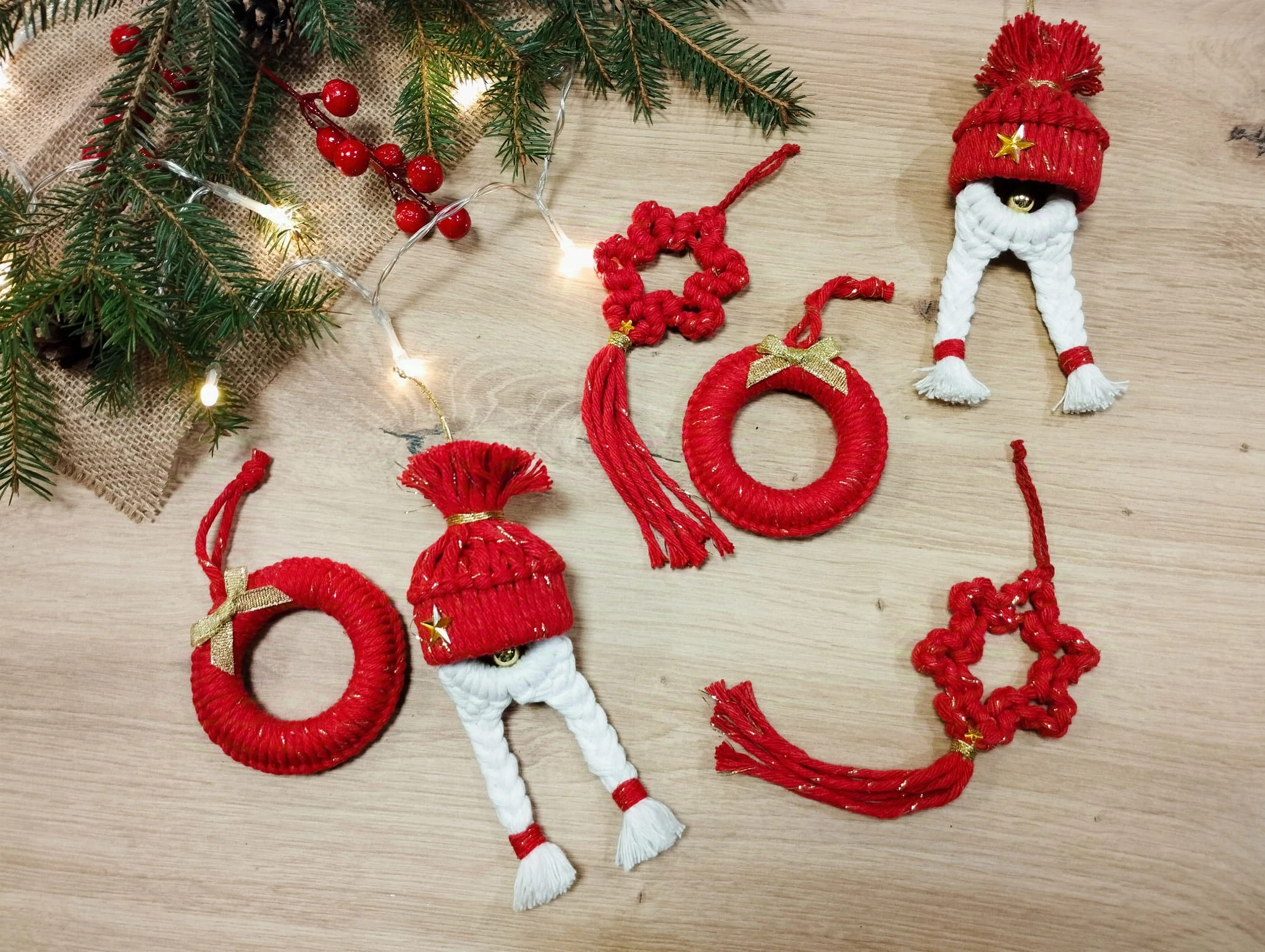Box świąteczny z ozdobami ze sznurka - Boże Narodzenie - 6 elementów, czerwony