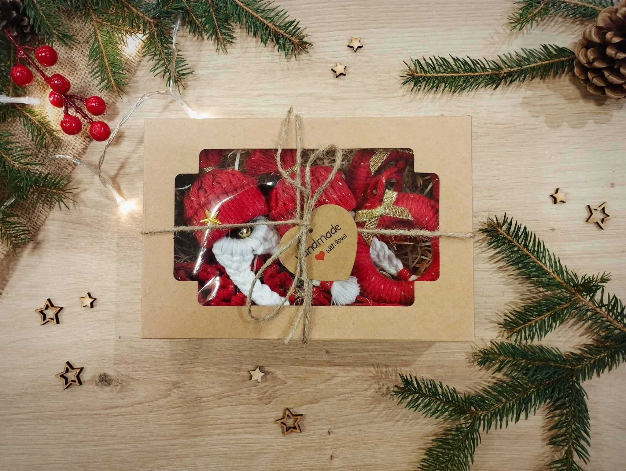 Zestaw sześciu zawieszek świątecznych, zapakowanych w ozdobne pudełko. Idealny box prezentowy, aby obdarować bliskie Ci osoby. Każda z zawieszek została wykonana ręcznie, z niezwykłą starannością o szczegóły. Bogata kolorystyka i różnorodność form, pozwoli nadać świąteczną atmosferę magii i ciepła każdemu wnętrzu. Ozdobią zarówno choinkowe gałęzie jak i okna.