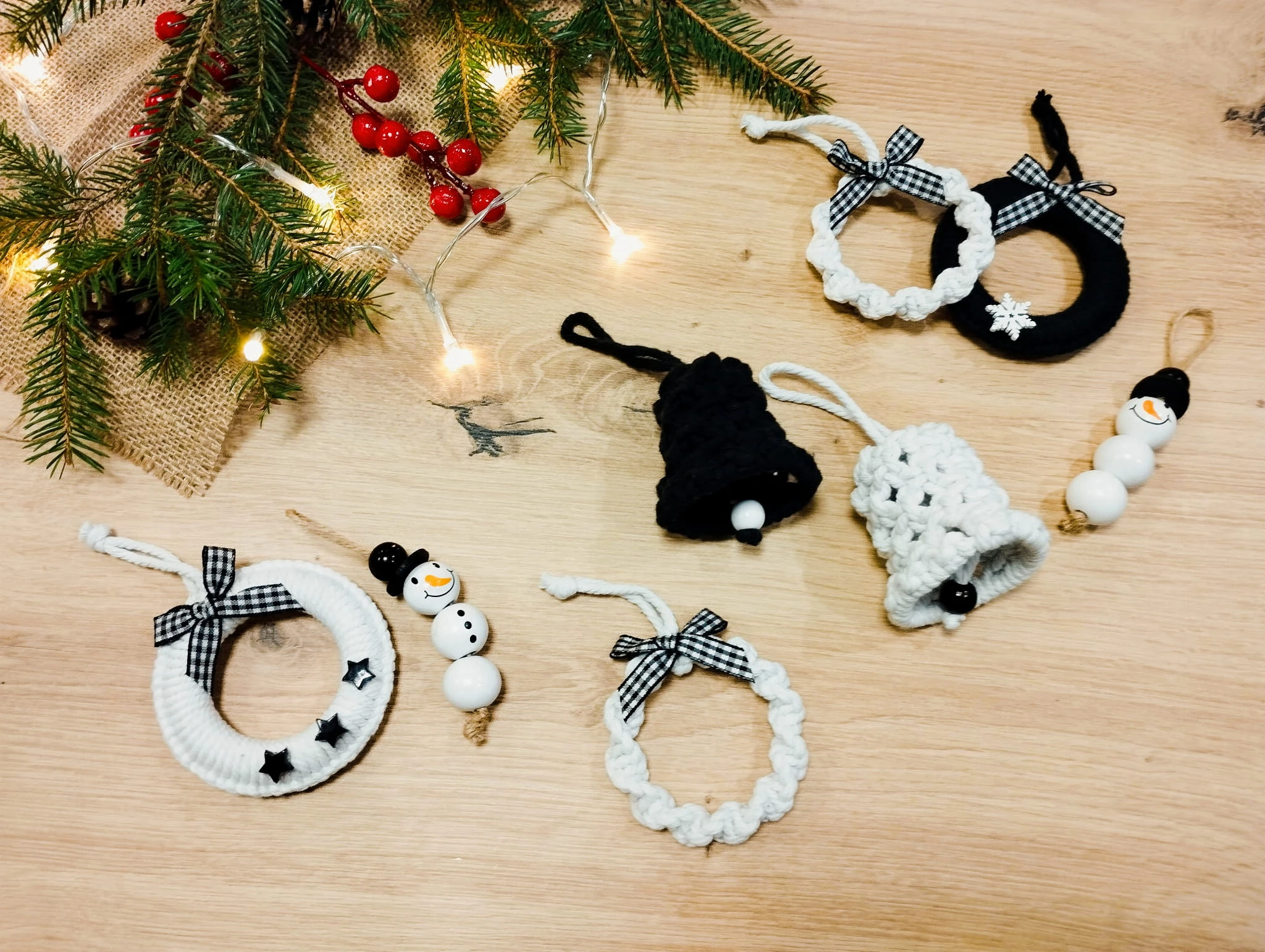 Box świąteczny z ozdobami ze sznurka - Boże Narodzenie - 8 elementów, biało-czarny 2