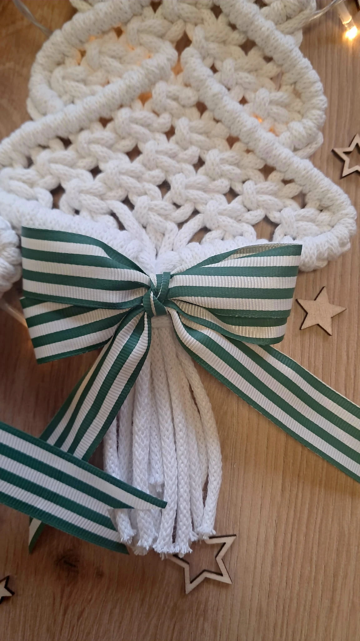 Ręcznie wykonana choinka z makramy to wyjątkowa, boho dekoracja świąteczna, która doda wnętrzu ciepła i naturalnego uroku. Pleciona z wysokiej jakości sznurka, świetnie sprawdzi się jako ozdoba ściany, drzwi lub prezent dla bliskiej osoby. Minimalistyczna, a jednocześnie efektowna- idealna na świąteczny czas.