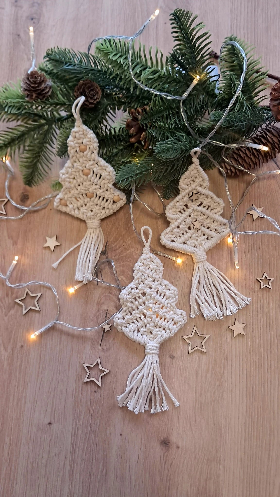Choinka z makramy 3 szt. Ozdoba świąteczna