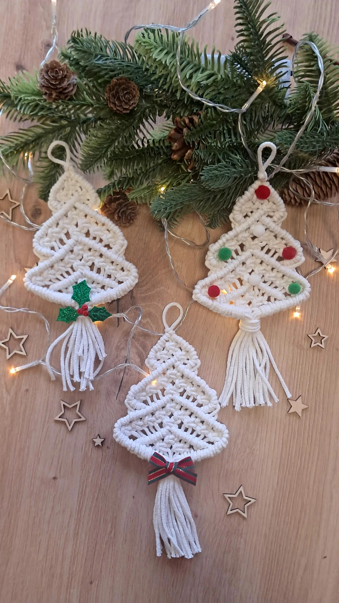 Choinka z makramy 3 szt. Ozdoba świąteczna
