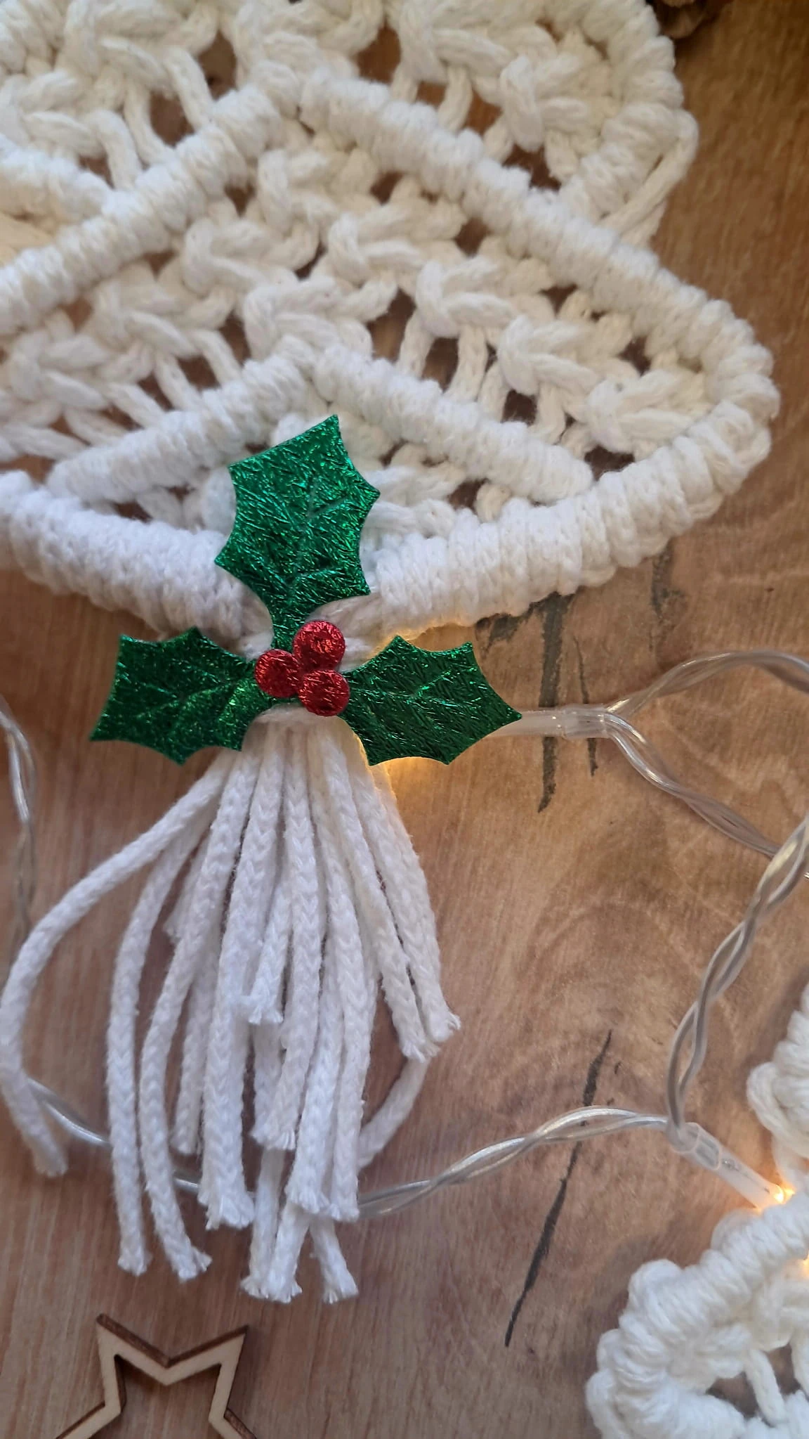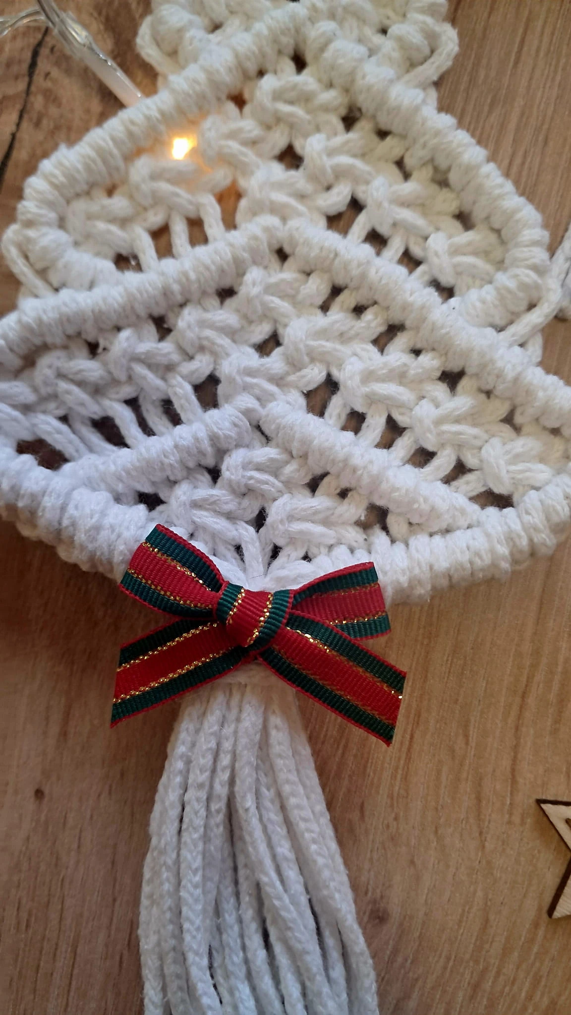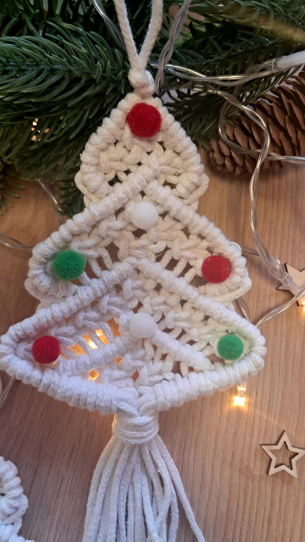 Ręcznie wykonana choinka z makramy to wyjątkowa, boho dekoracja świąteczna, która doda wnętrzu ciepła i naturalnego uroku. Pleciona z wysokiej jakości bawełnianego sznurka, świetnie sprawdzi się jako ozdoba ściany, drzwi lub prezent dla bliskiej osoby. Minimalistyczna, a jednocześnie efektowna-idealna na swiateczny czas.