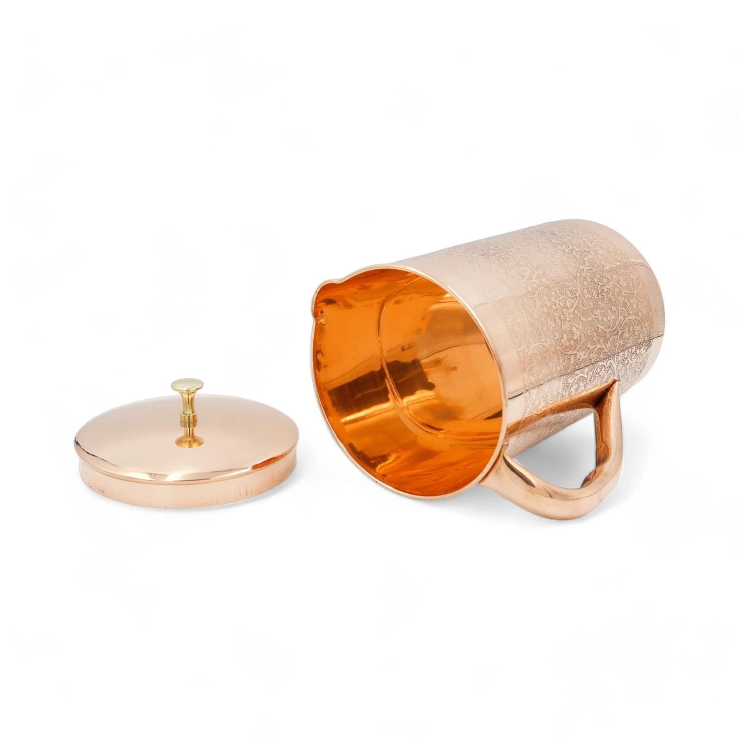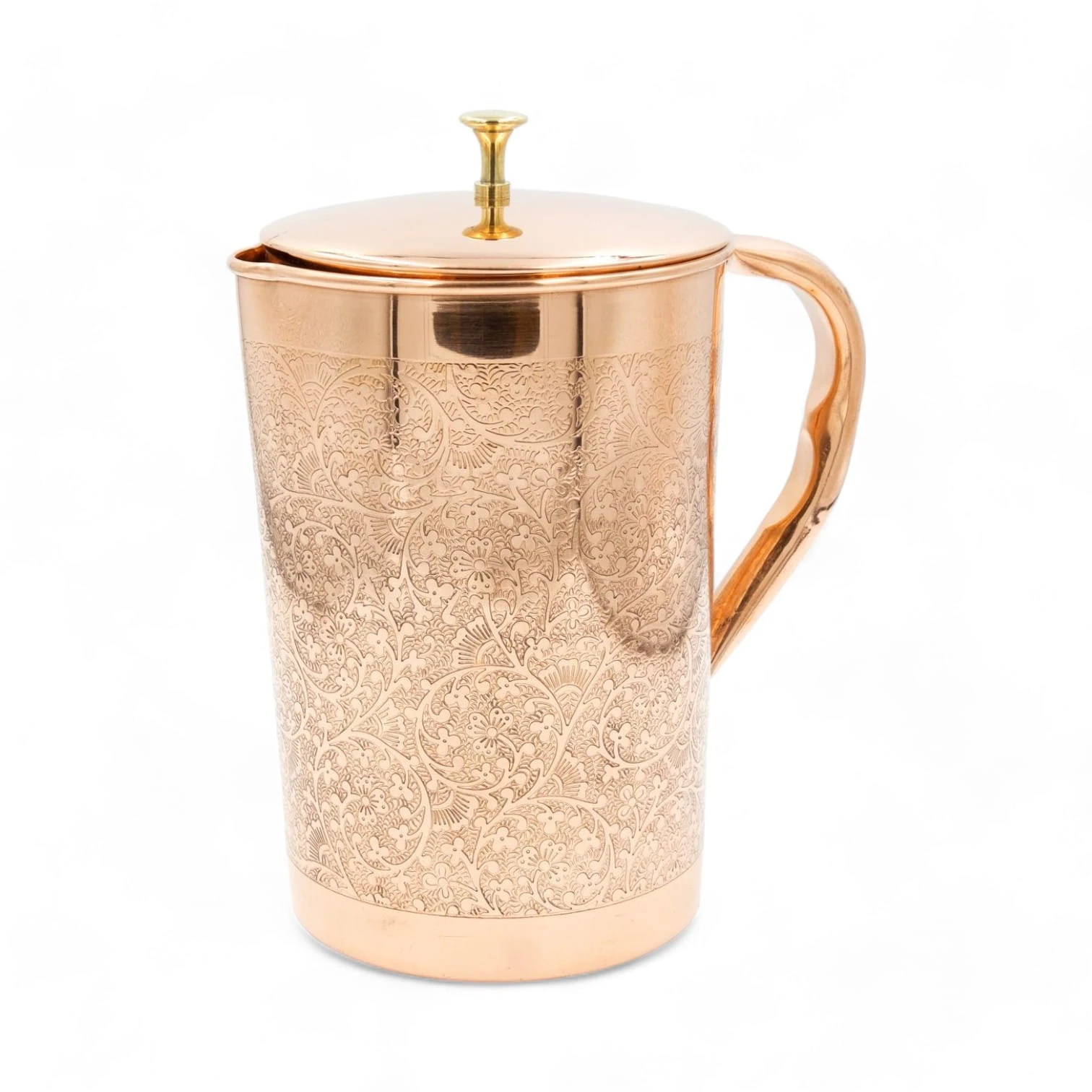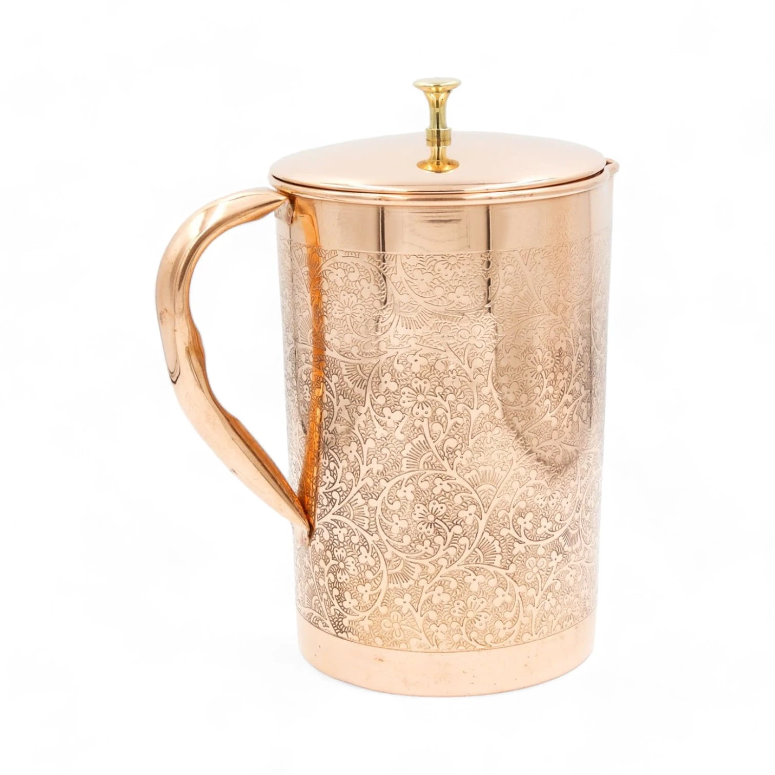 Dzbanek miedziany grawerowany z klasycznym orientalnym motywem.
