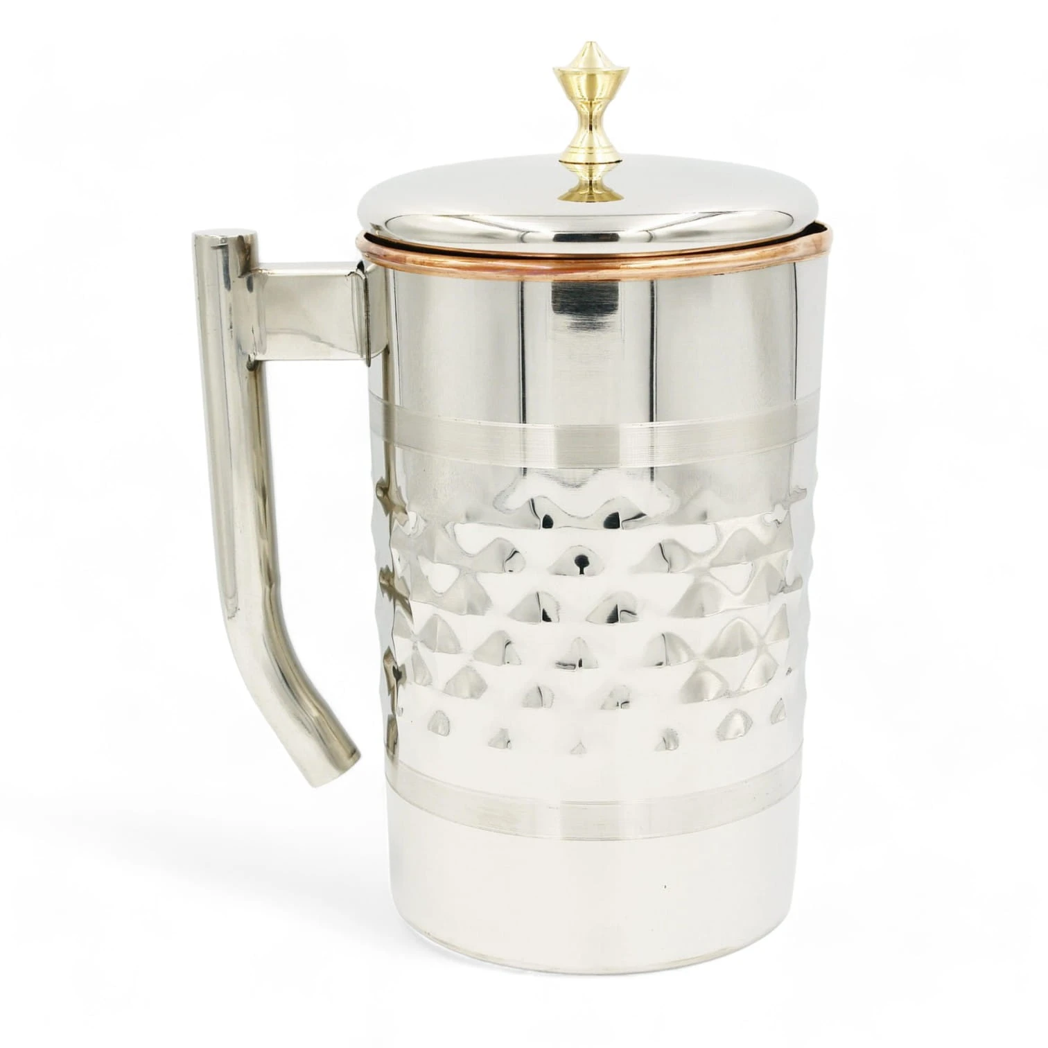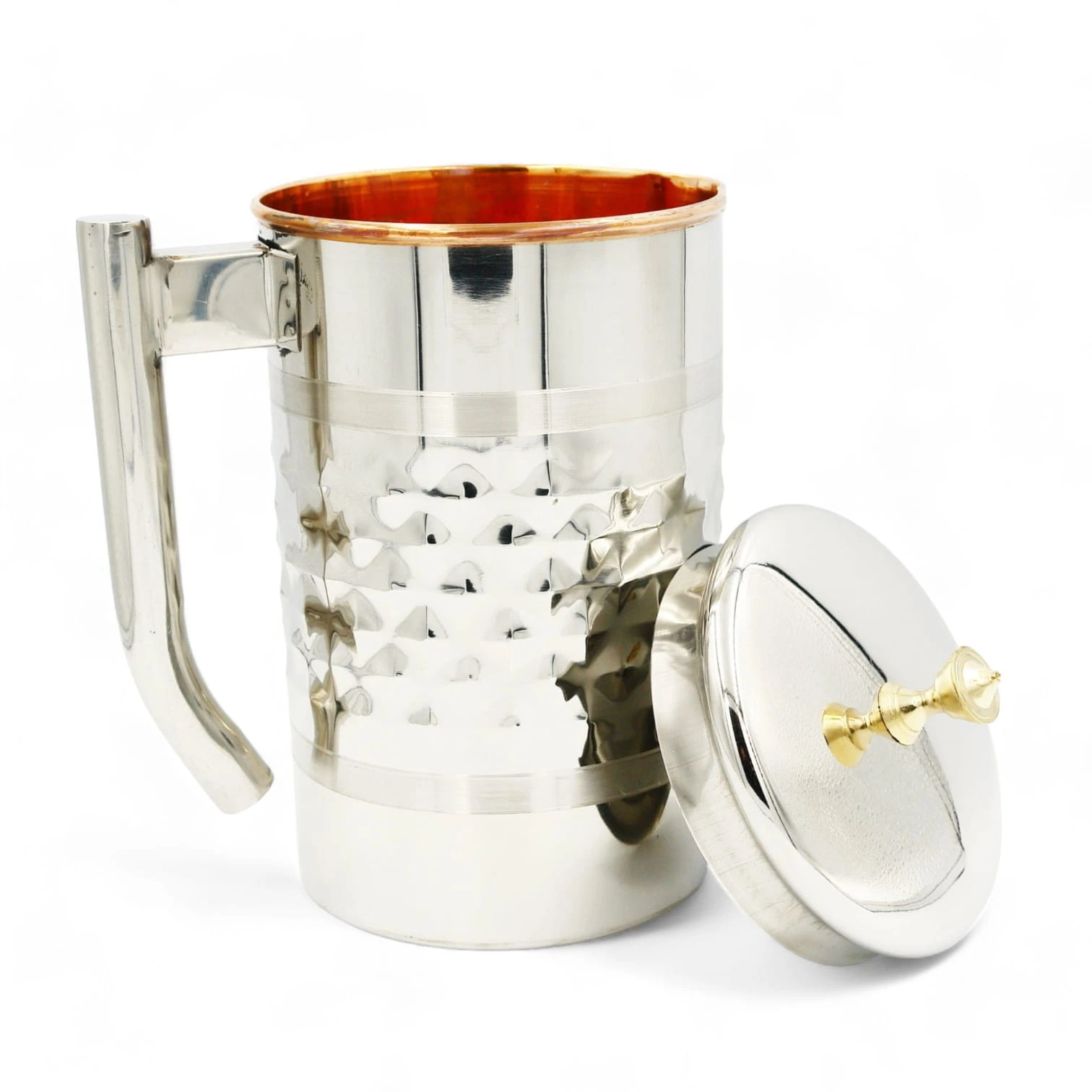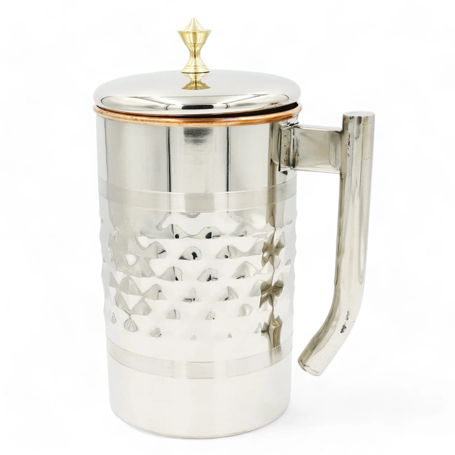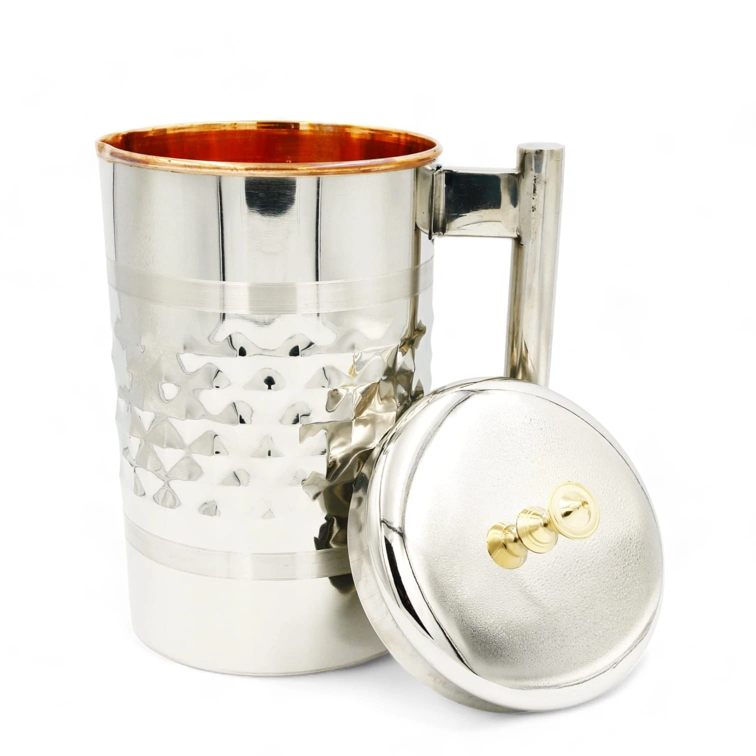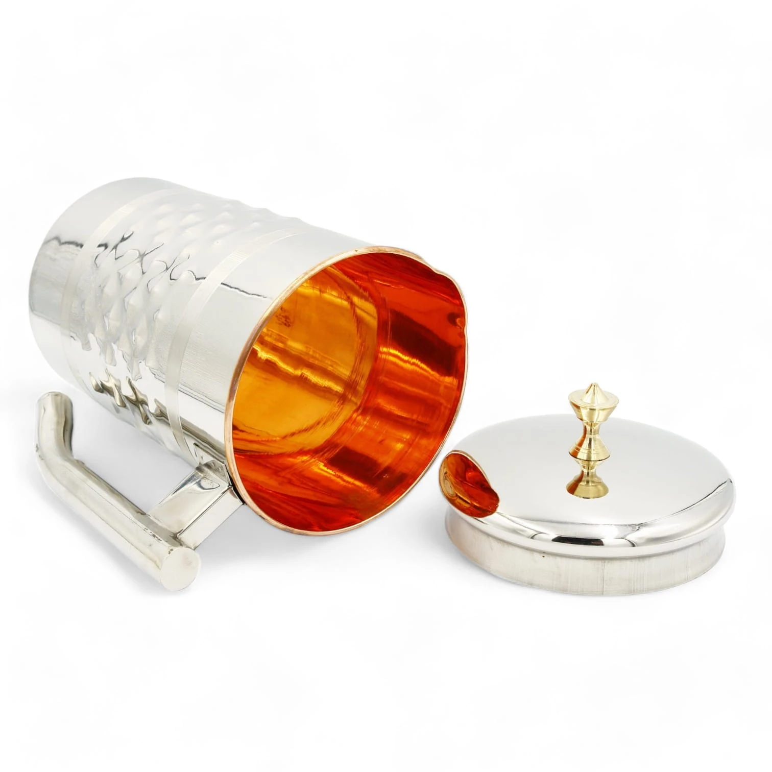 Pojemność 1900 ml mierzona po samą krawędź naczynia. Dzbanek ma podwójne ścianki i zewnętrzna warstwa jest wykonana ze stali nierdzewnej a środek jest “wyłożony” czystą miedzią w celu jonizowania i uzdatniania wody.