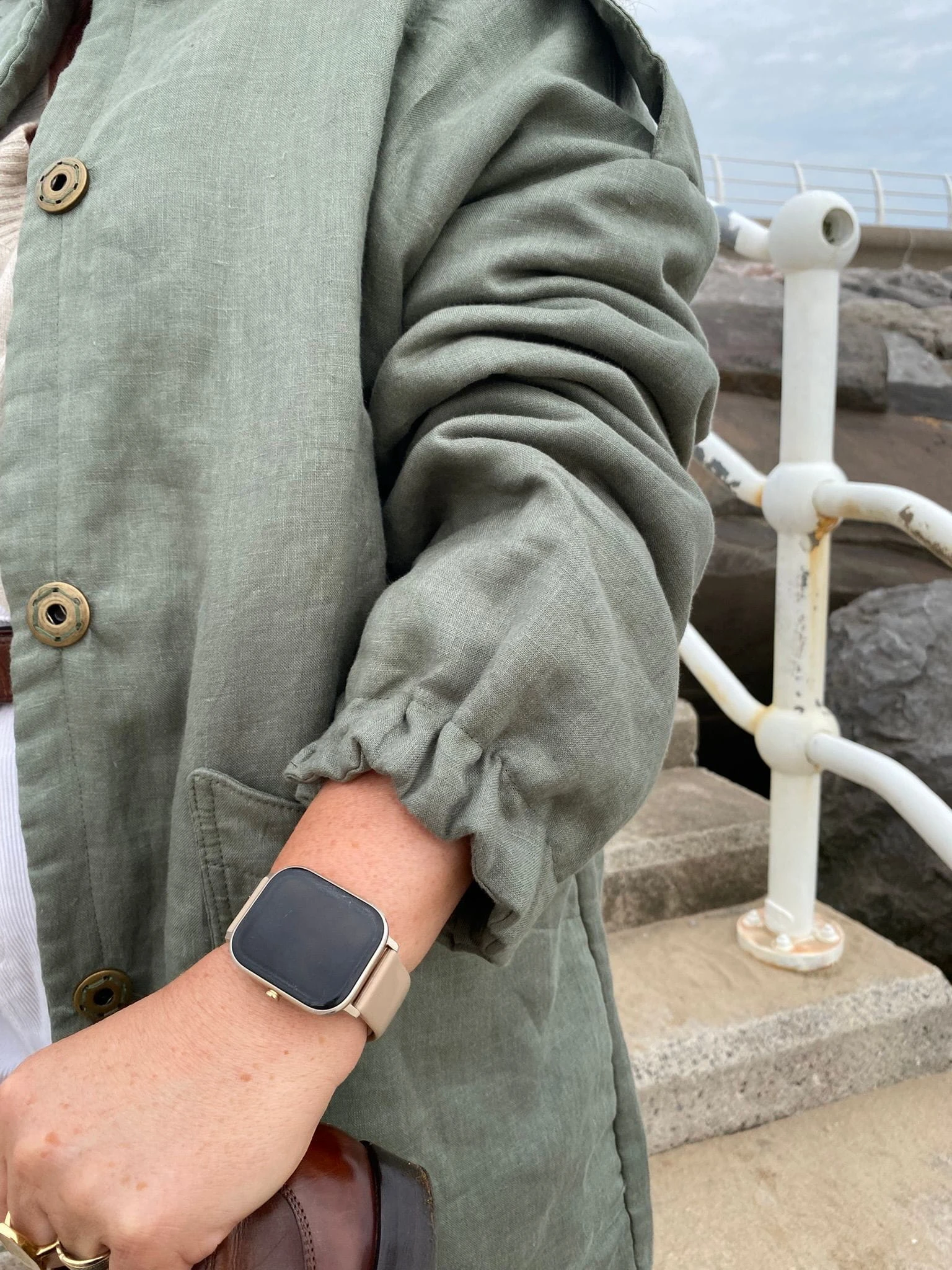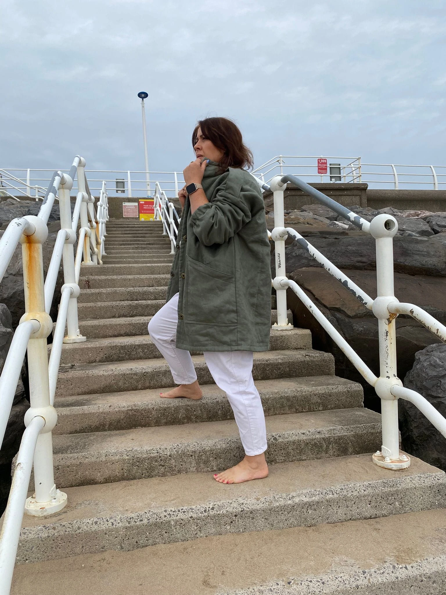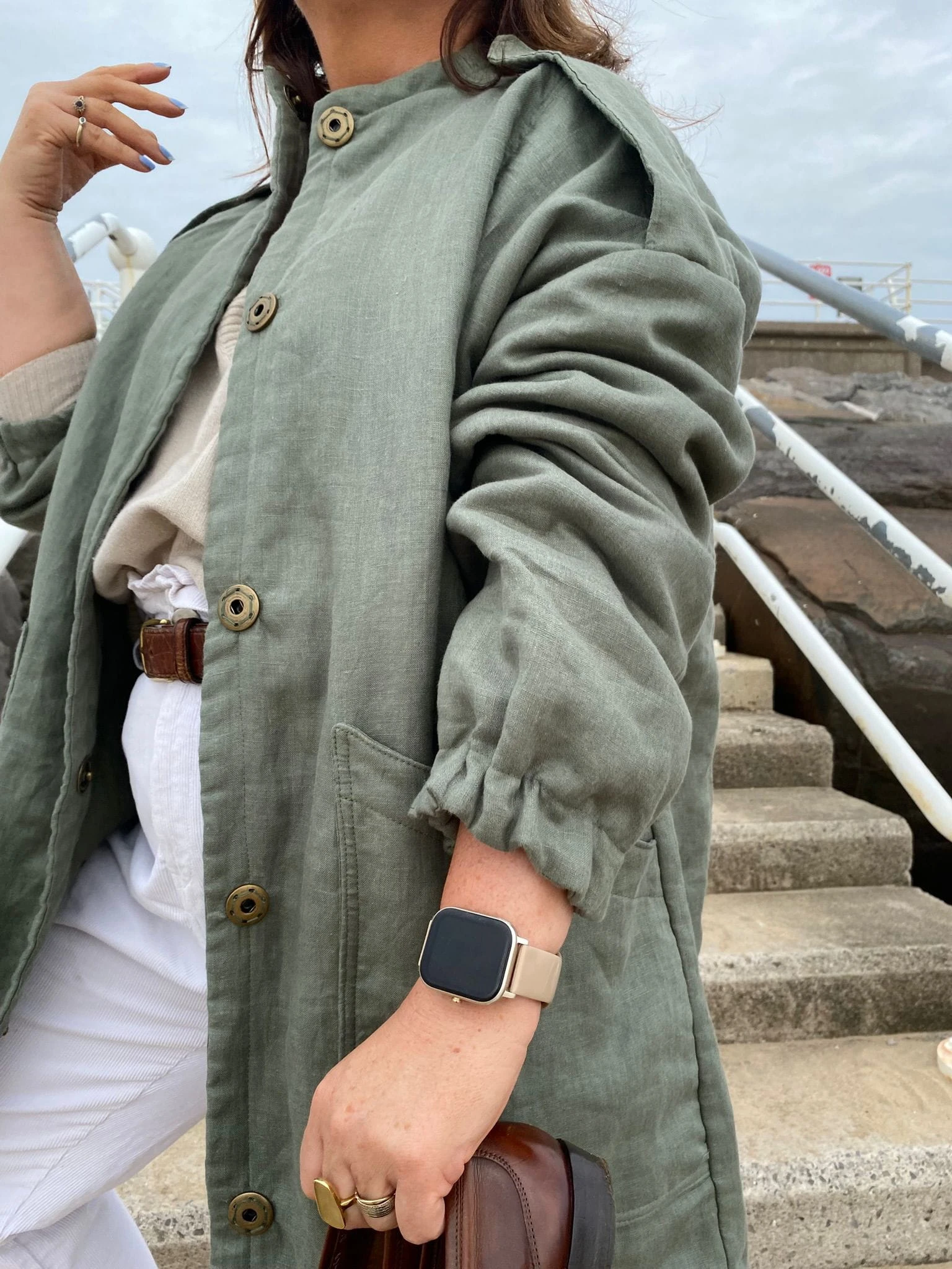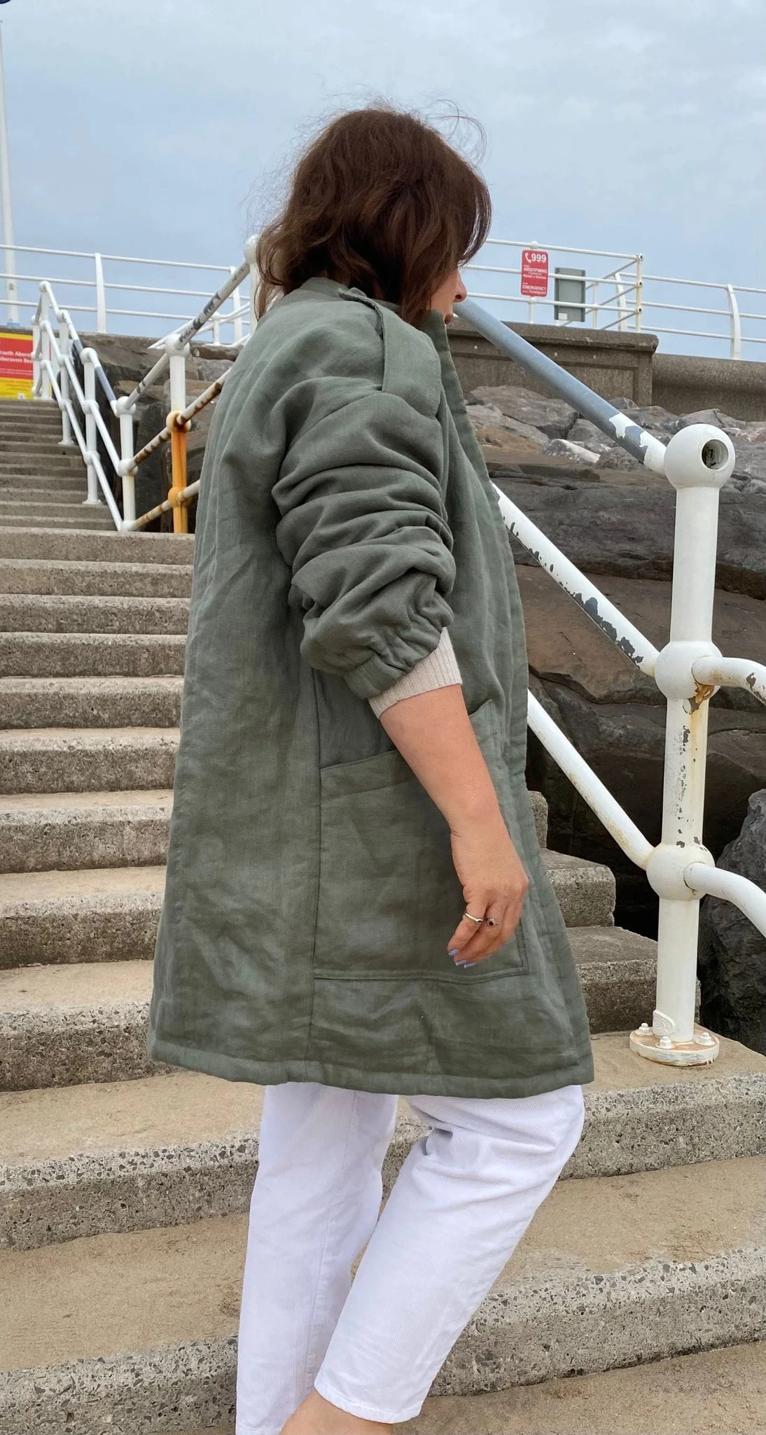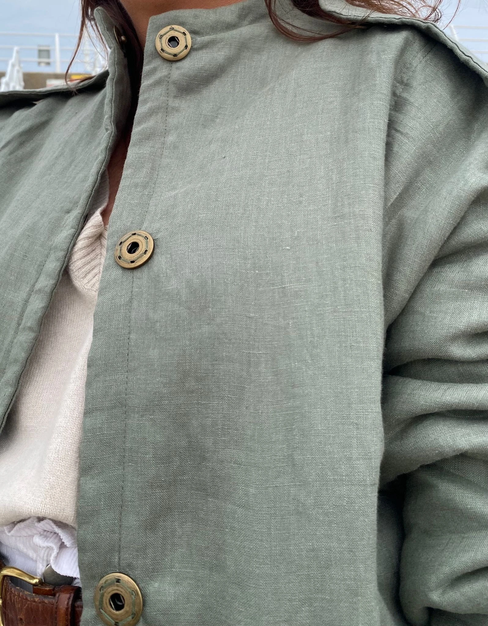 Militarny akcent w naturalnym wydaniu. Jeśli cenisz sobie naturalny komfort i subtelne nawiązania do stylu militarnego, ta kurtka będzie idealnym wyborem. Uszyta z dbałością o detale, z naturalnych materiałów — zarówno warstwa wierzchnia, jak i podszewka wykonane są ze 100% lnu, a ocieplenie z miękkiej, bawełnianej watoliny, która zapewnia przyjemne ciepło. Kurtka ma lekko wydłużony, kubełkowy fason, który świetnie układa się na sylwetce. Wyposażona w duże, naszywane kieszenie oraz ozdobne zatrzaski, łączy funkcjonalność z oryginalnym stylem. Elastyczne wykończenie rękawów i stójka przy dekolcie zwiększają wygodę noszenia, a pagony nadają całości wyrazistego, militarnego charakteru. Model ten doskonale sprawdzi się zarówno w miejskim wydaniu, jak i podczas jesiennych spacerów. Noś ją z wysokimi kaloszami lub butami trekkingowymi, albo zestaw z cygaretkami, loafersami i klasyczną białą koszulą, by przełamać konwencję i stworzyć stylizację z charakterem.