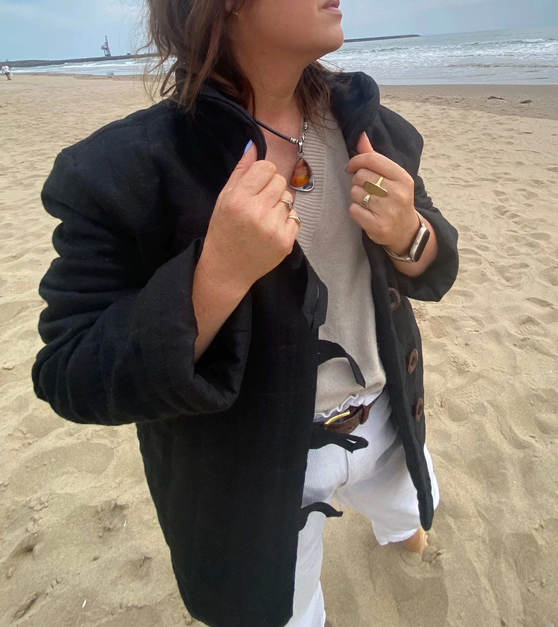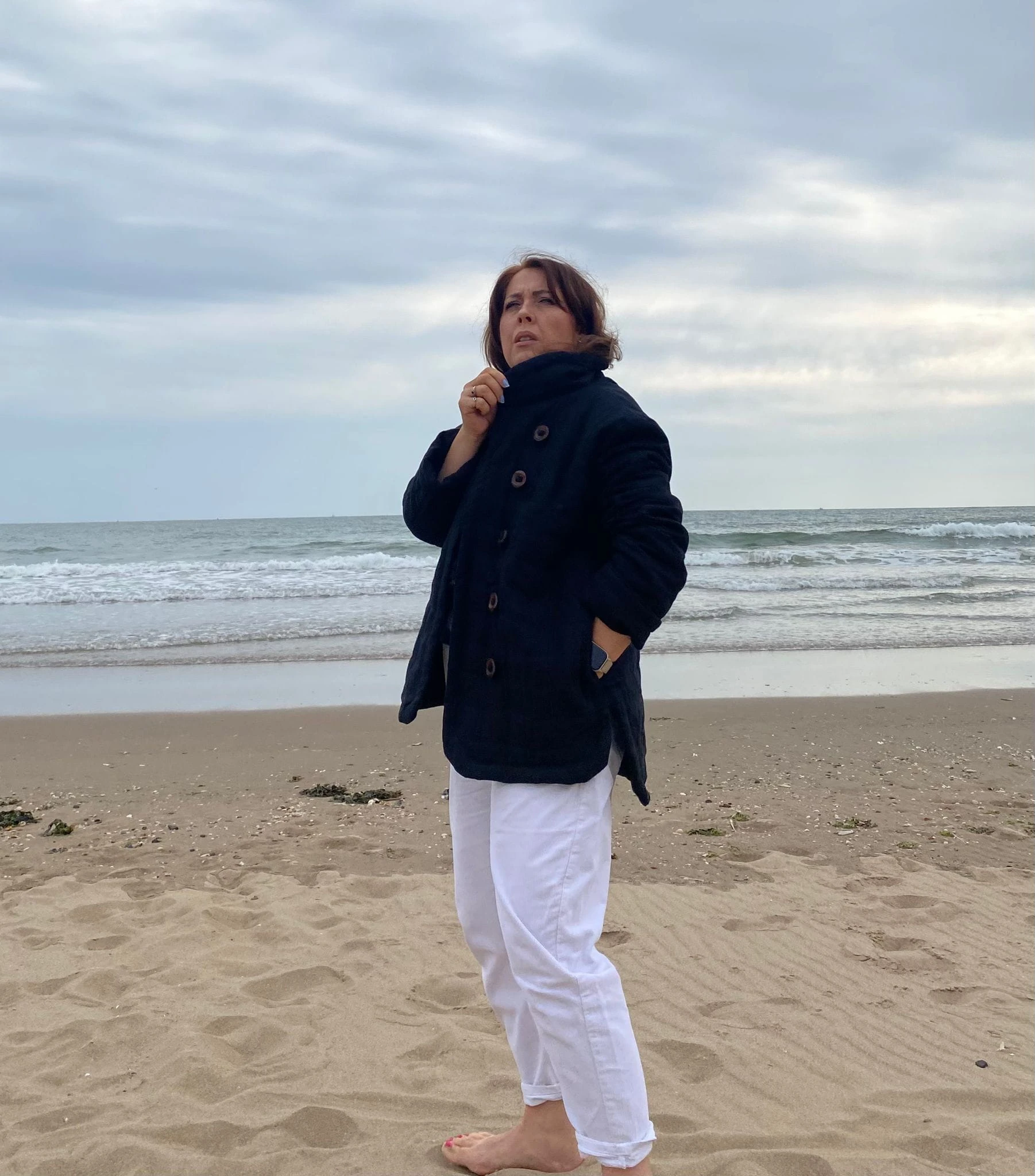 Wyjątkowo ciepła i efektowna kurtka o kubełkowym kroju, z delikatnie wydłużonym tyłem. Wykonana w całości z naturalnego lnu – zarówno warstwa wierzchnia, jak i podszewka – zapewnia komfort noszenia i przewiewność, a silikonowe wypełnienie gwarantuje przyjemne ciepło w chłodniejsze dni. Pikowanie w subtelną kratkę i fantazyjnie wszyte guziki nadają kurtce oryginalny charakter. To idealna propozycja na sezon przejściowy – świetnie sprawdzi się w codziennych stylizacjach, zarówno tych sportowych, jak i bardziej stonowanych. Zestawiona z satynową lub lnianą spódnicą oraz ciężkimi, motocyklowymi butami stworzy nietuzinkowy, wyrazisty look.