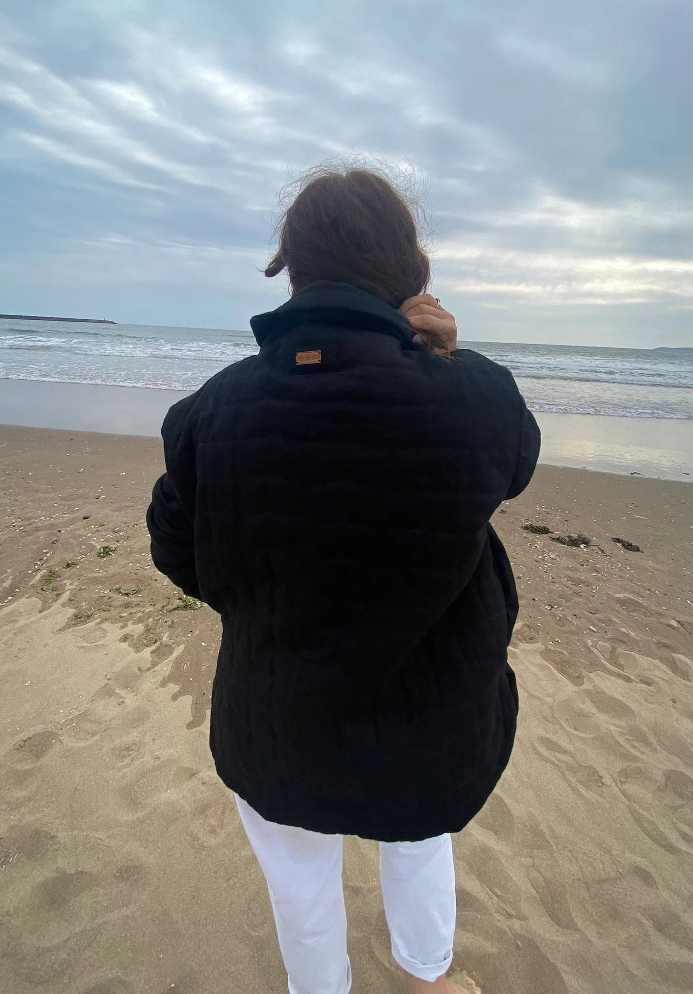KURTKA/KRÓTKI PŁASZCZYK OCIEPLANY z lnu, KUBEŁKOWY czarny, rozmiar UNIWERSALNY