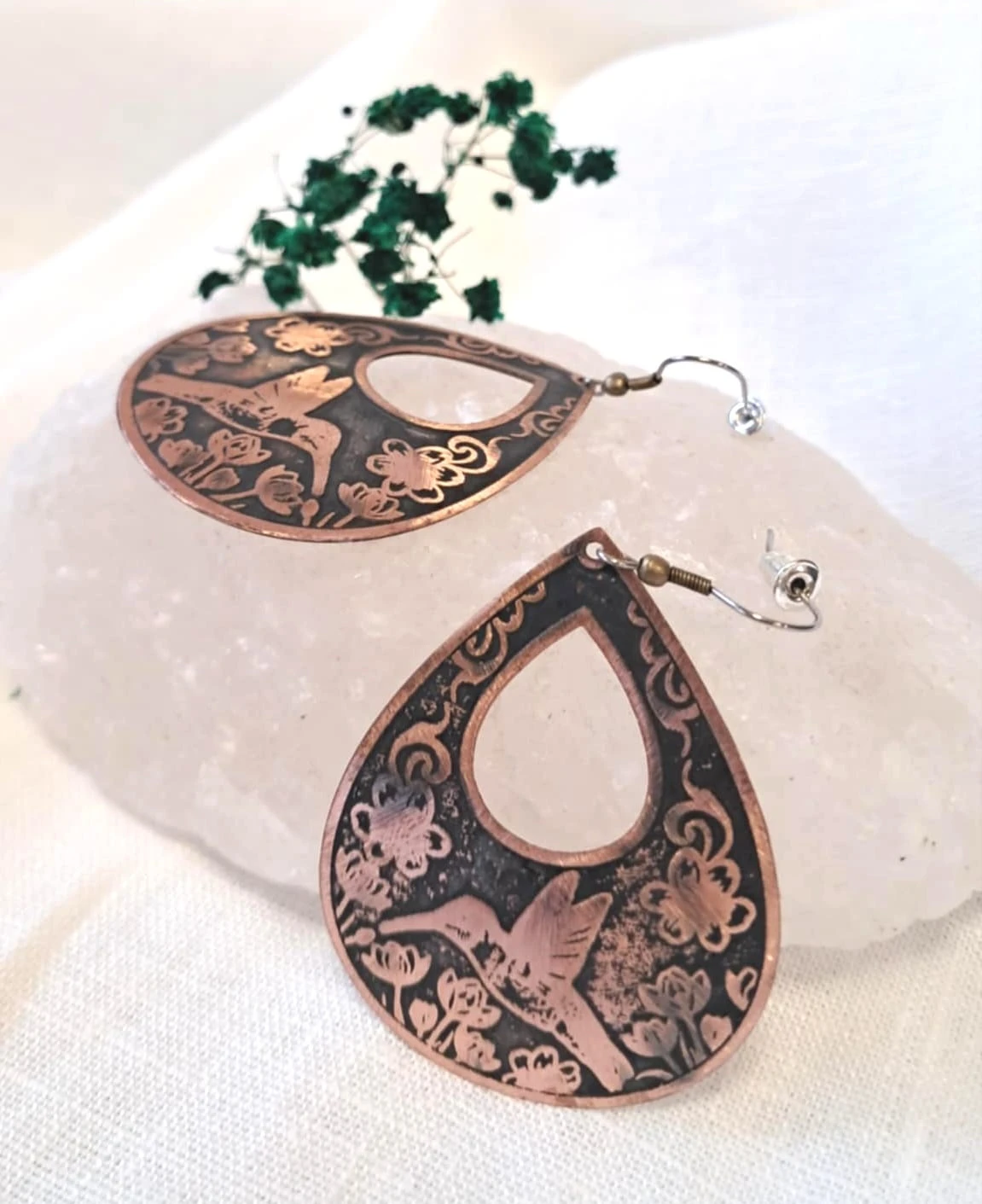 Oryginalne miedziane kolczyki damskie wykonana z czystej miedzi bez domieszek niklu. Klientki które na co dzień noszą biżuterię miedzianą zauważyły poprawę samopoczucia, mniejsze zmęczenie i wzrost energii.
