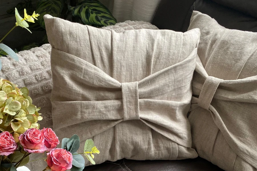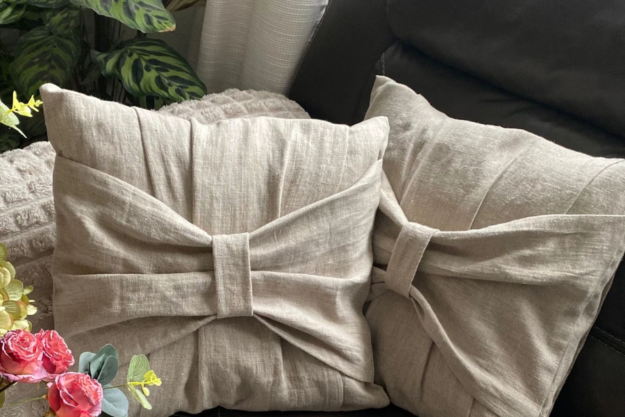 Komplet Poszewek Dekoracyjnych LEN 100% - 40x40 cm, (2 szt. ) KOKARDA