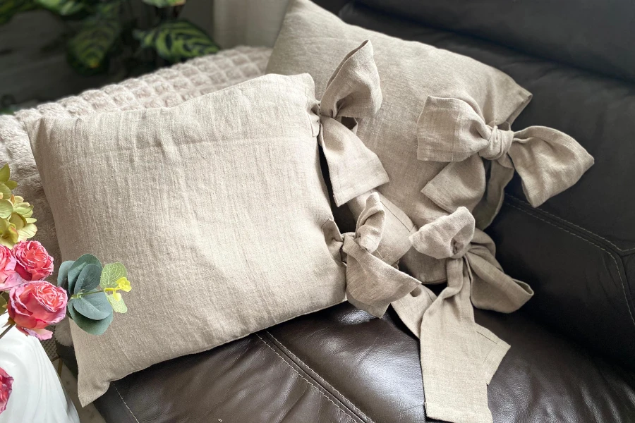 Komplet Poszewek Dekoracyjnych Lnianych - 40x40 cm, (2 szt. ) WSTĄŻKI