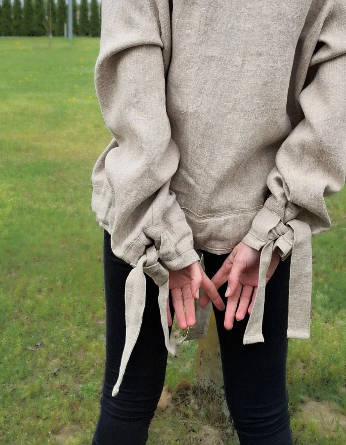 Każdy element tej kolekcji lnianej uszyty jest w ilości ograniczonej, tj. 1-2 szt. Zatem jest to produkt unikatowy, stworzony dzięki kreatywności naszej projektantki. Nie znajdziesz go w masowej produkcji, co jest gwarancją oryginalności i niepowtarzalnego stylu.