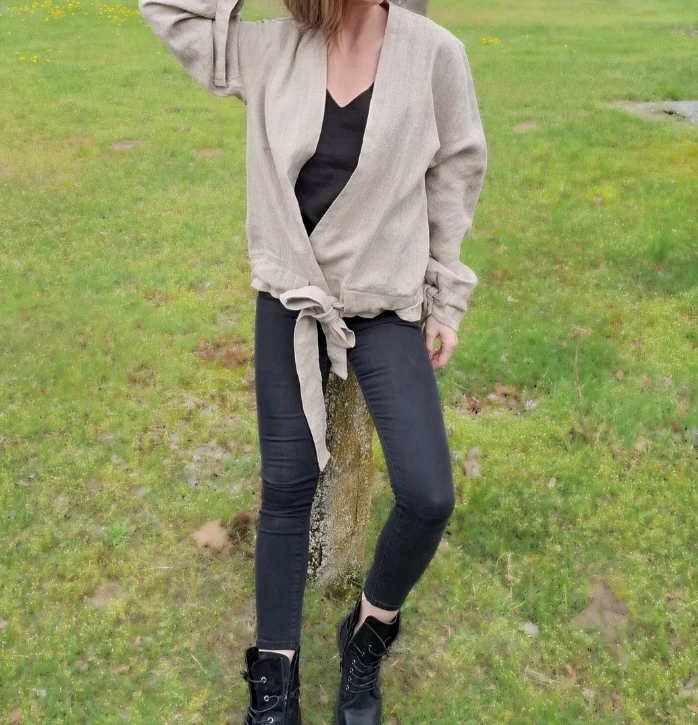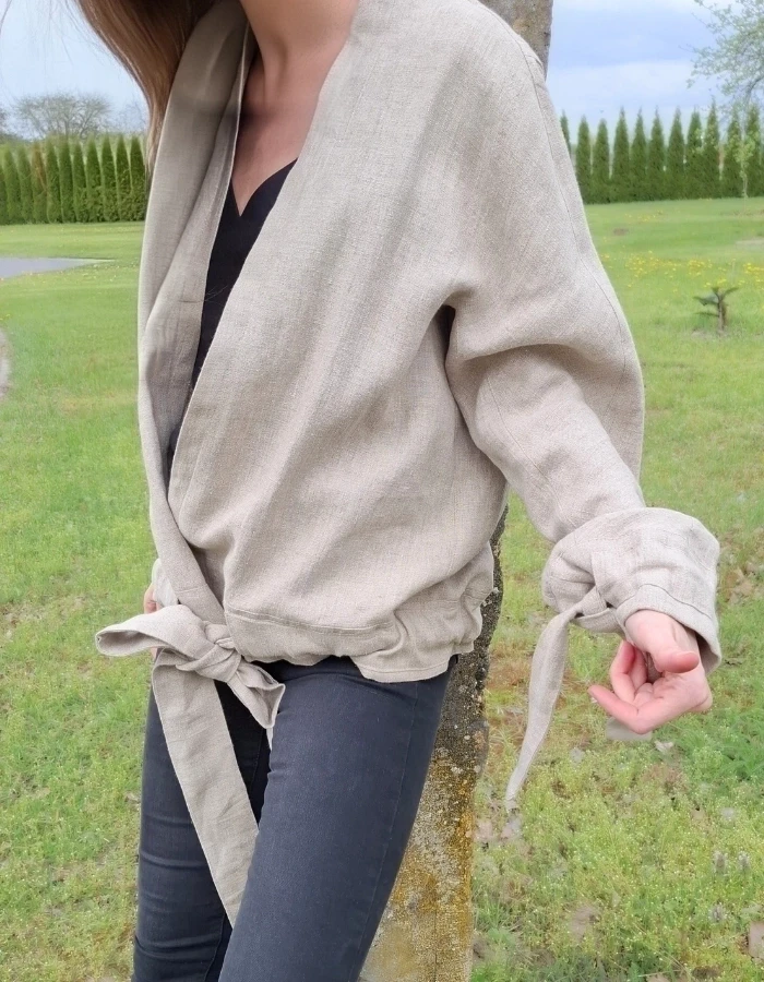 Kurtka świetnie podkręci stylizacje zarówno te sportowe z ulubionymi dresami czy dżinsami z dodatkiem burgundowych akcentów, które świetnie podbija naturalny kolor lnu, czy w nieco cięższym wydaniu ze skórzanymi dodatkami spodni czy butów. Również połączona ze zwiewną letnią sukienką czy jesienną dzianinową, będzie świetnym modowym dodatkiem.