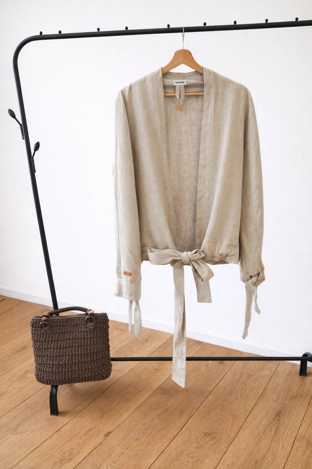 Kurtka, Żakiet damski, naturalny beż LEN 100% - rozmiar uniwersalny