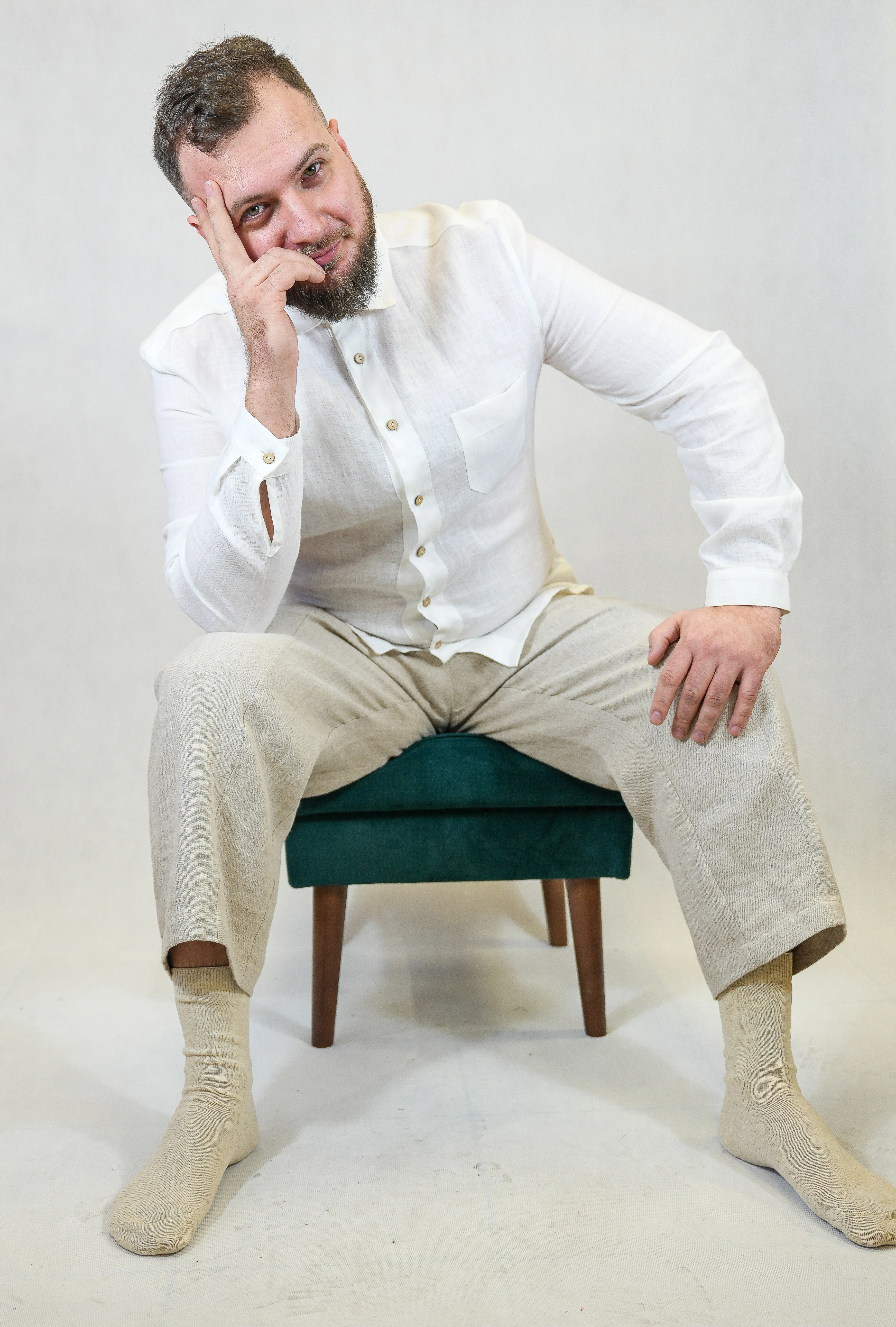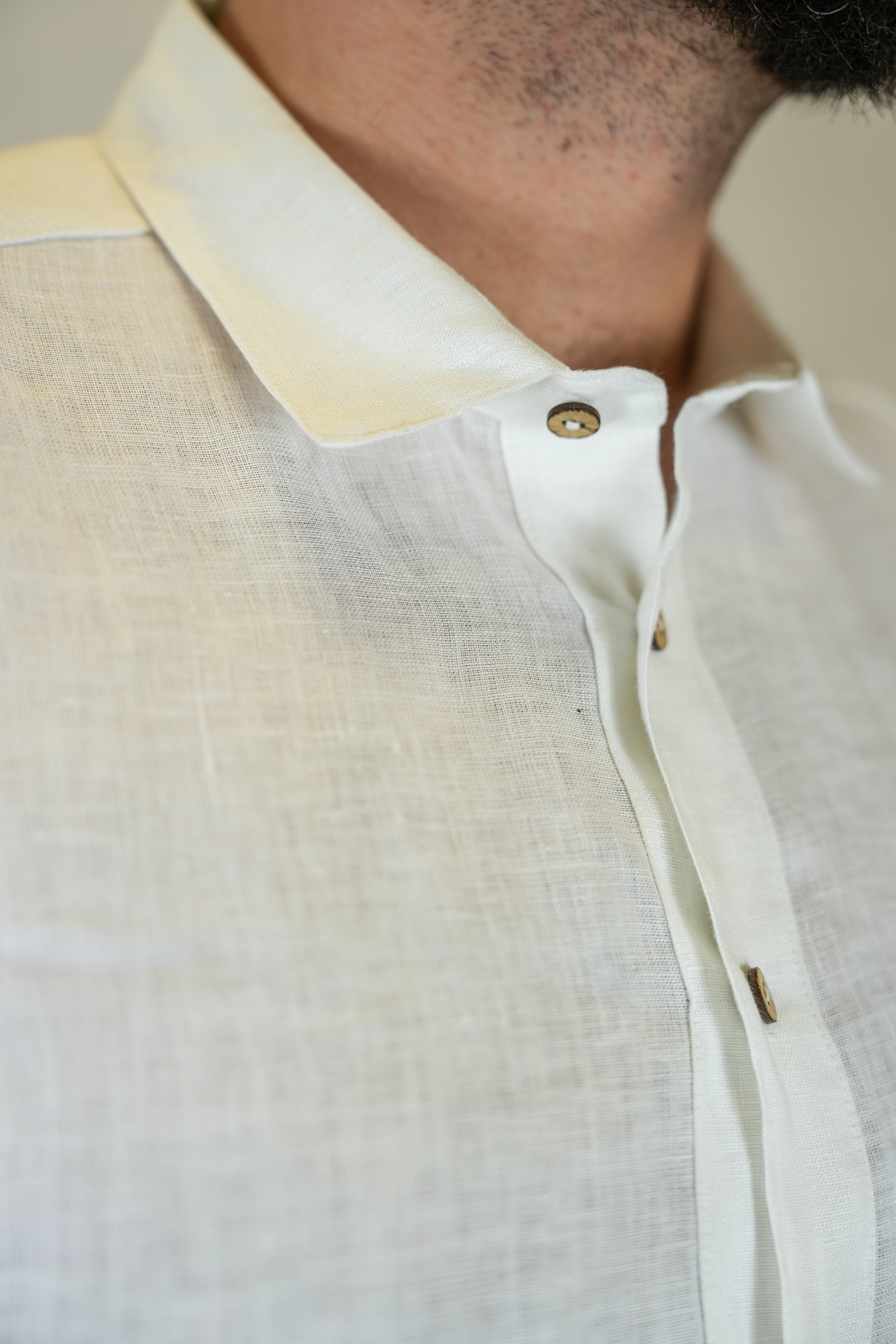 Lniana koszula męska z kołnierzykiem i długim rękawem w kolorze białym