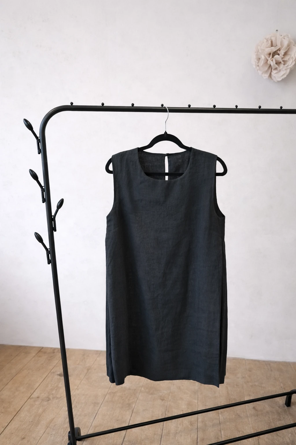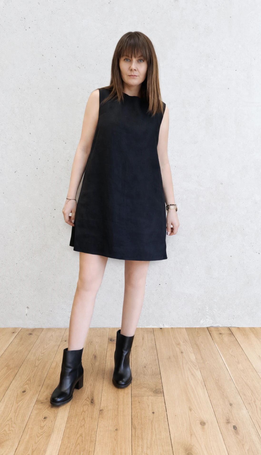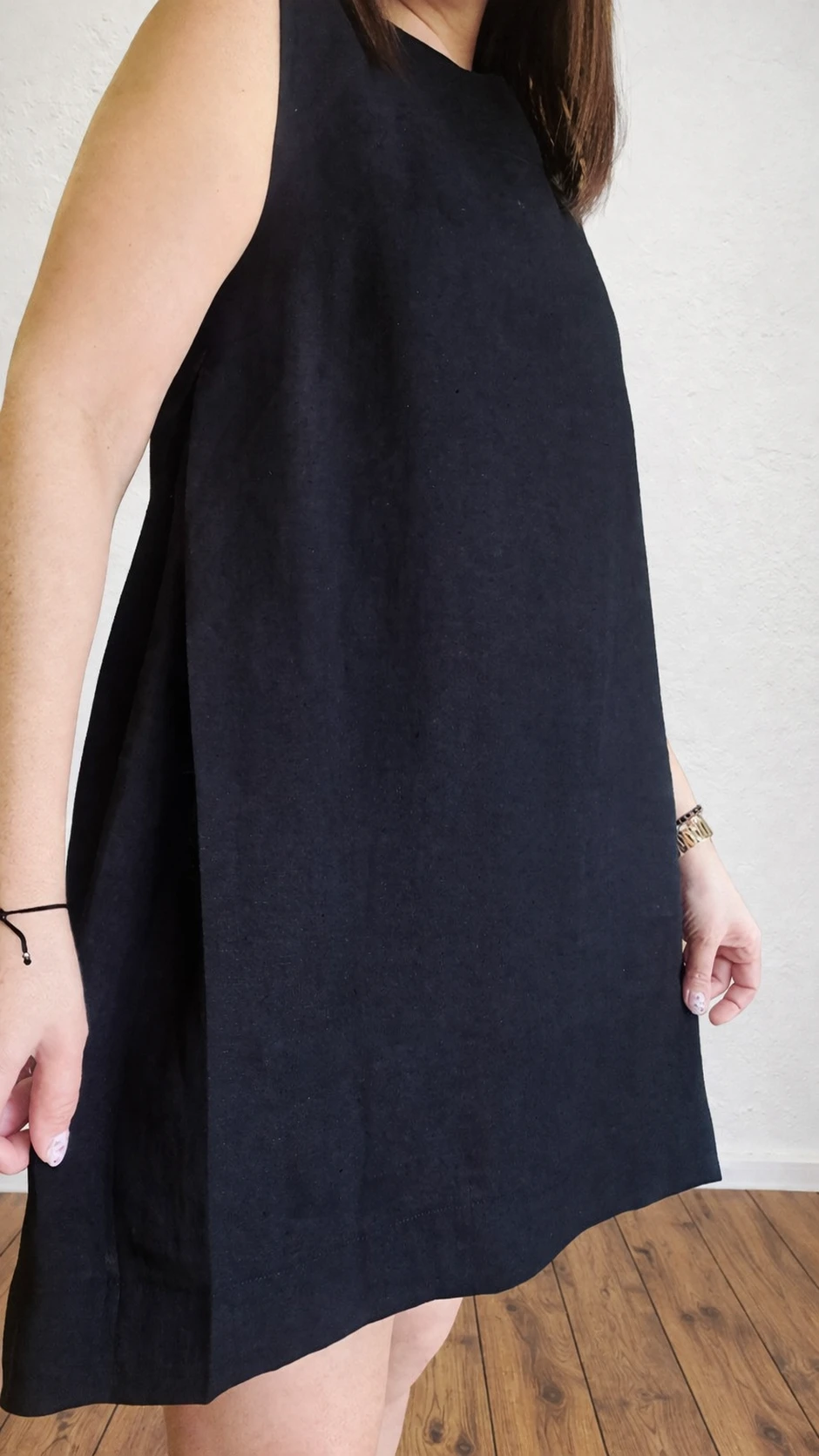 Lniana Sukienka minimalistyczna - TRAPEZOWA, czarna