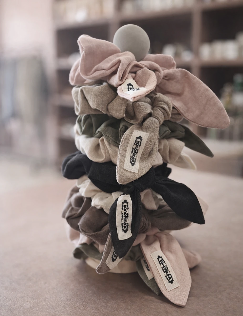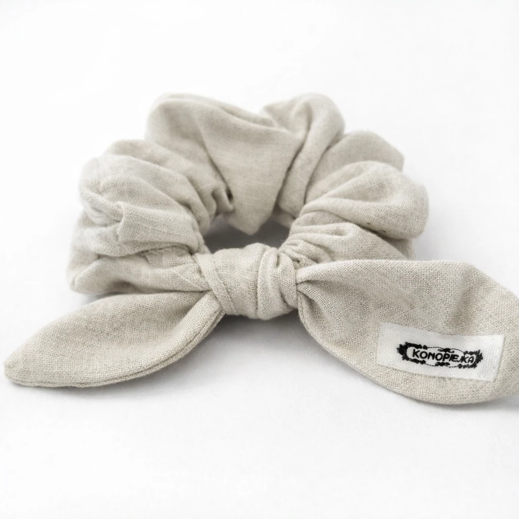Lniane gumeczki z ozdobnym wiązaniem to subtelny dodatek, który podkreśla każdą fryzurę- od luznego koka po elegancki kucyk.