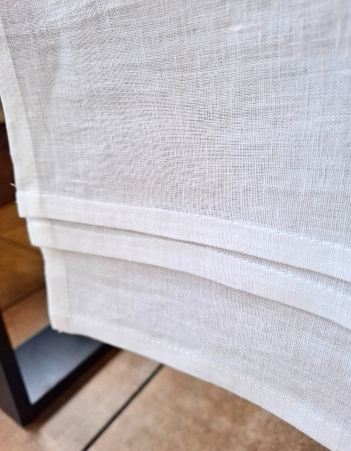 Wybierając wielkość bieżnika uwzględnij również niewielką kurczliwość lnu stonewashed i dodaj kilka centymetrów do docelowego rozmiaru.