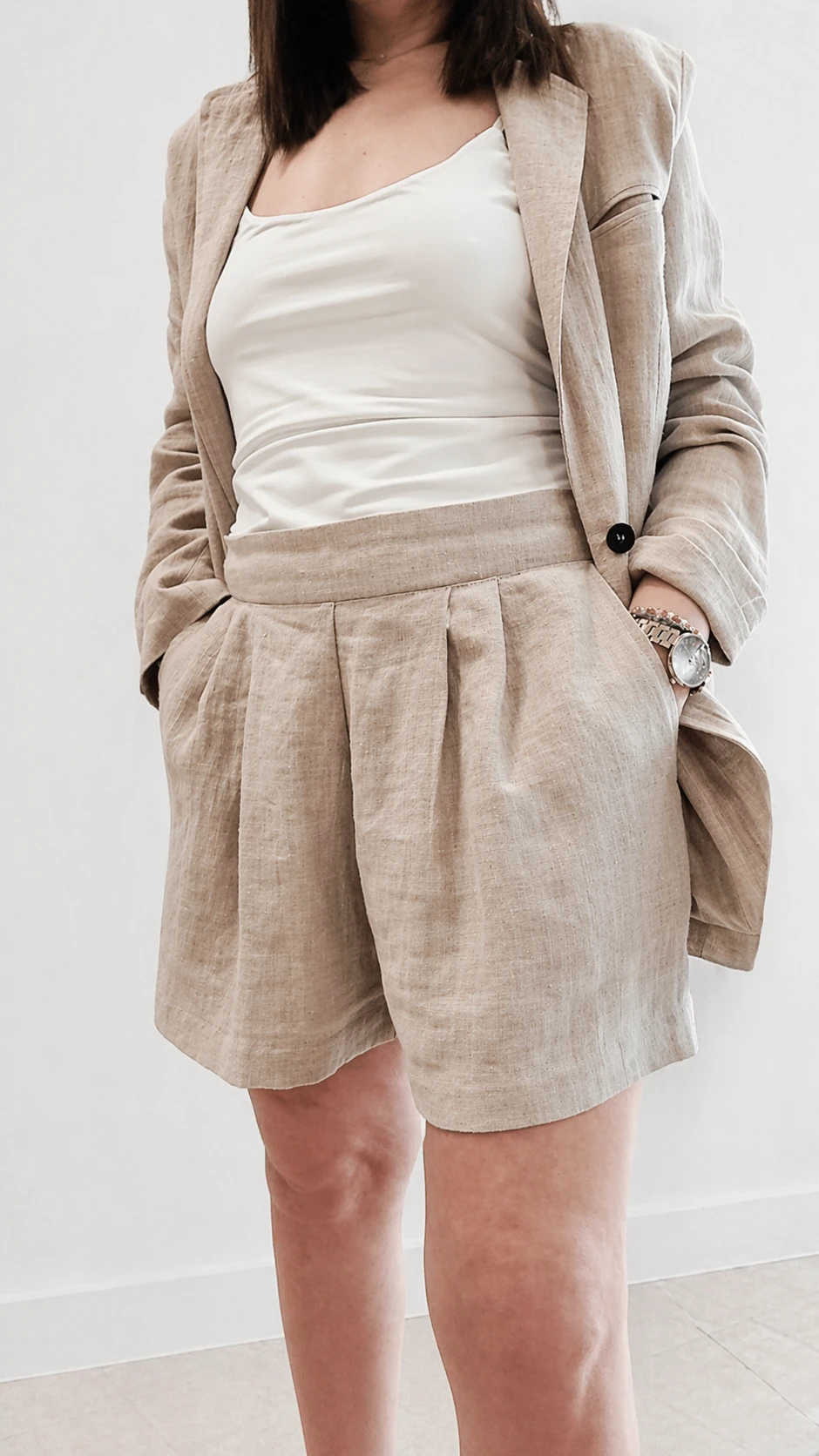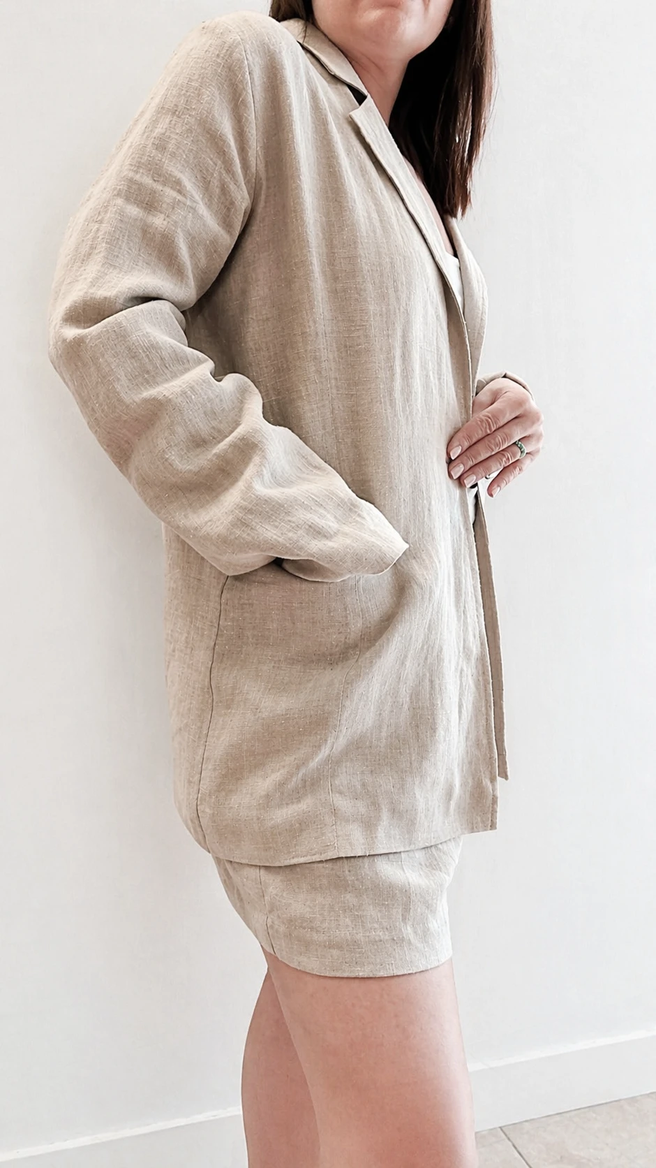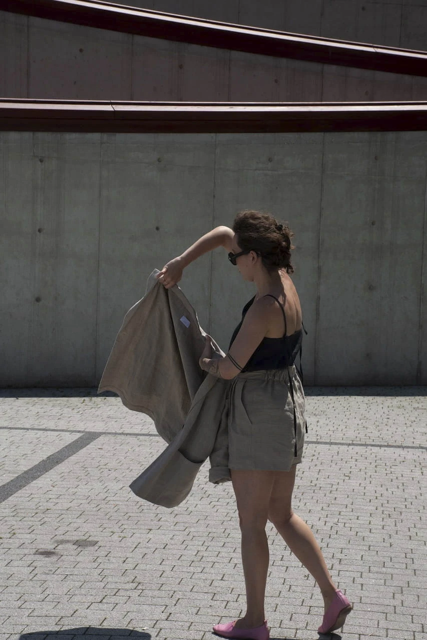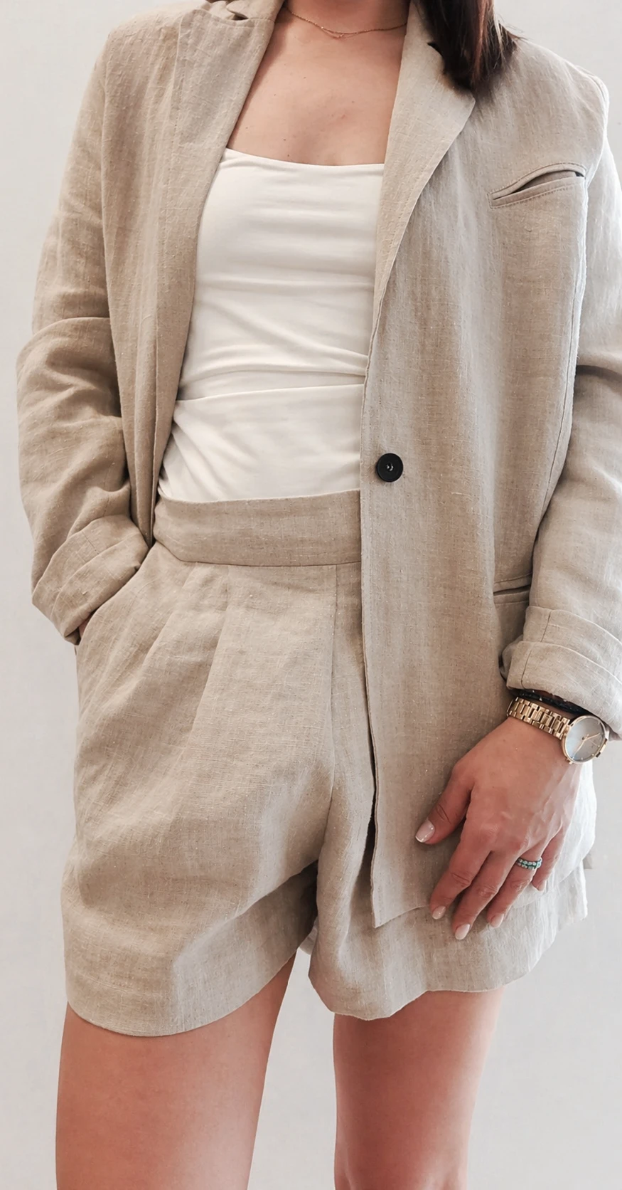 Lniany garnitur damski marynarka + szorty