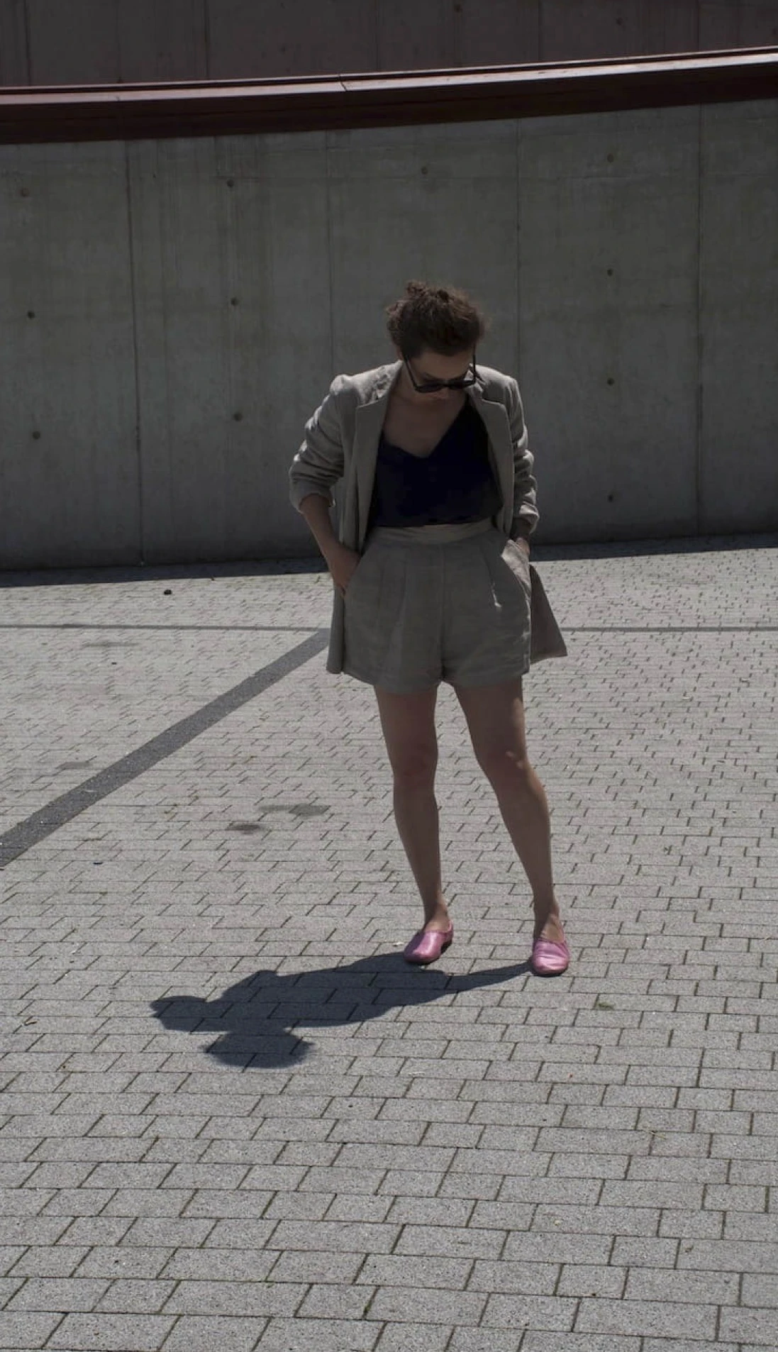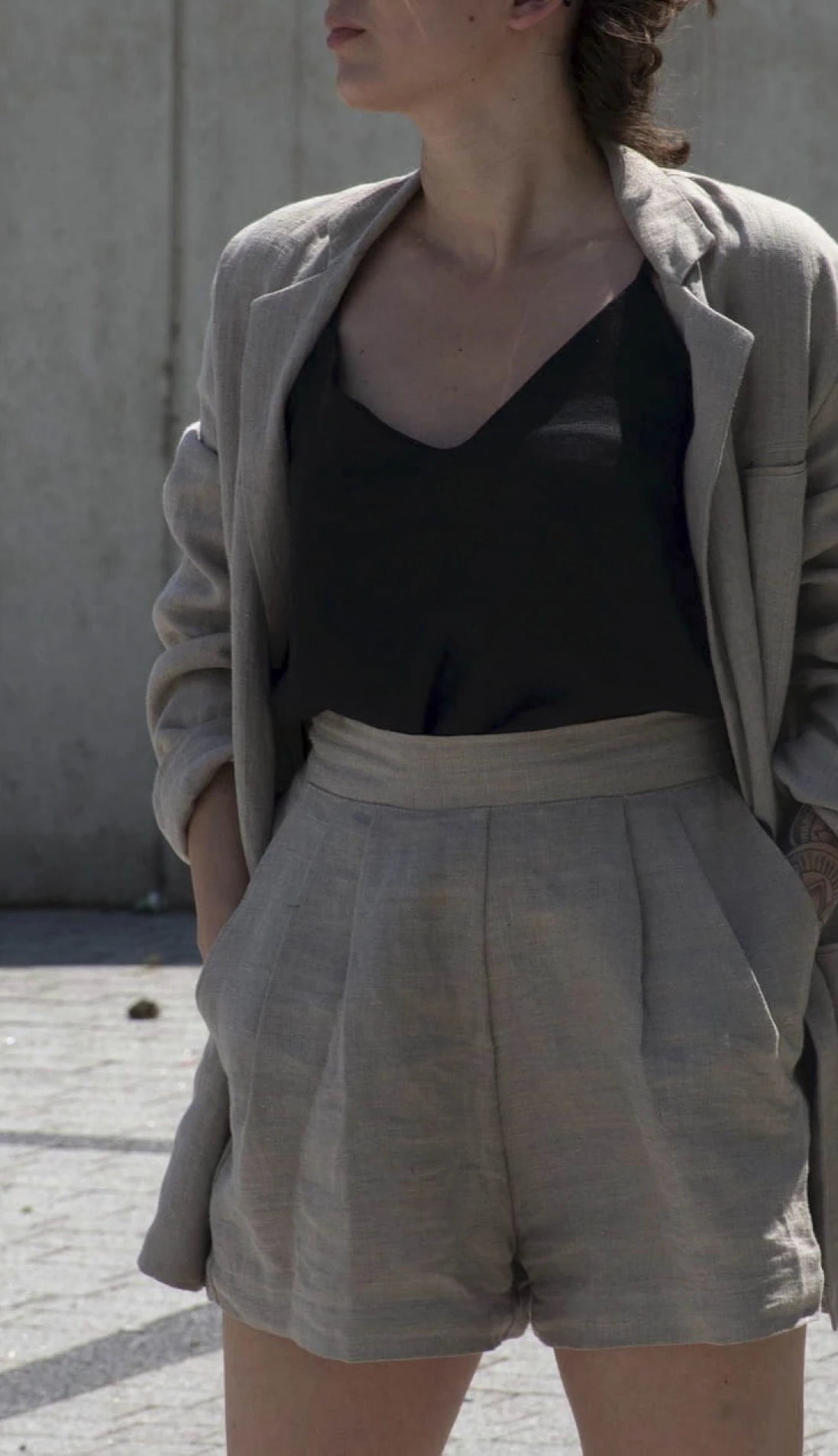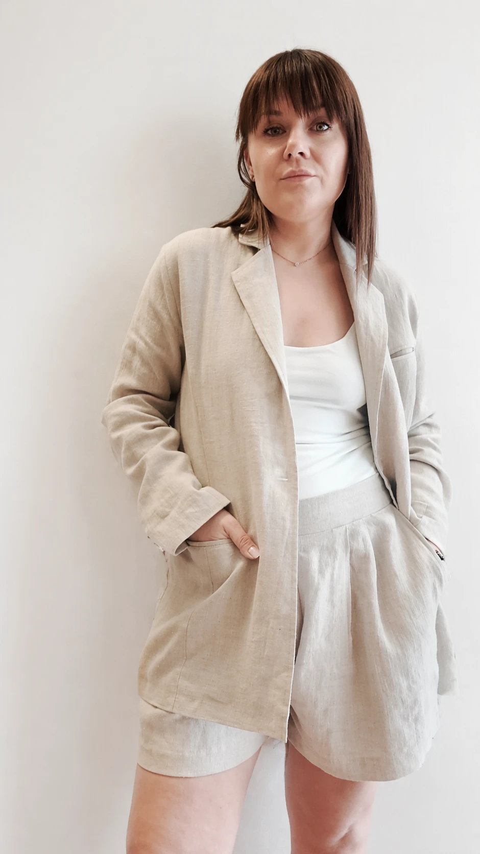 Lniany garnitur damski marynarka + szorty