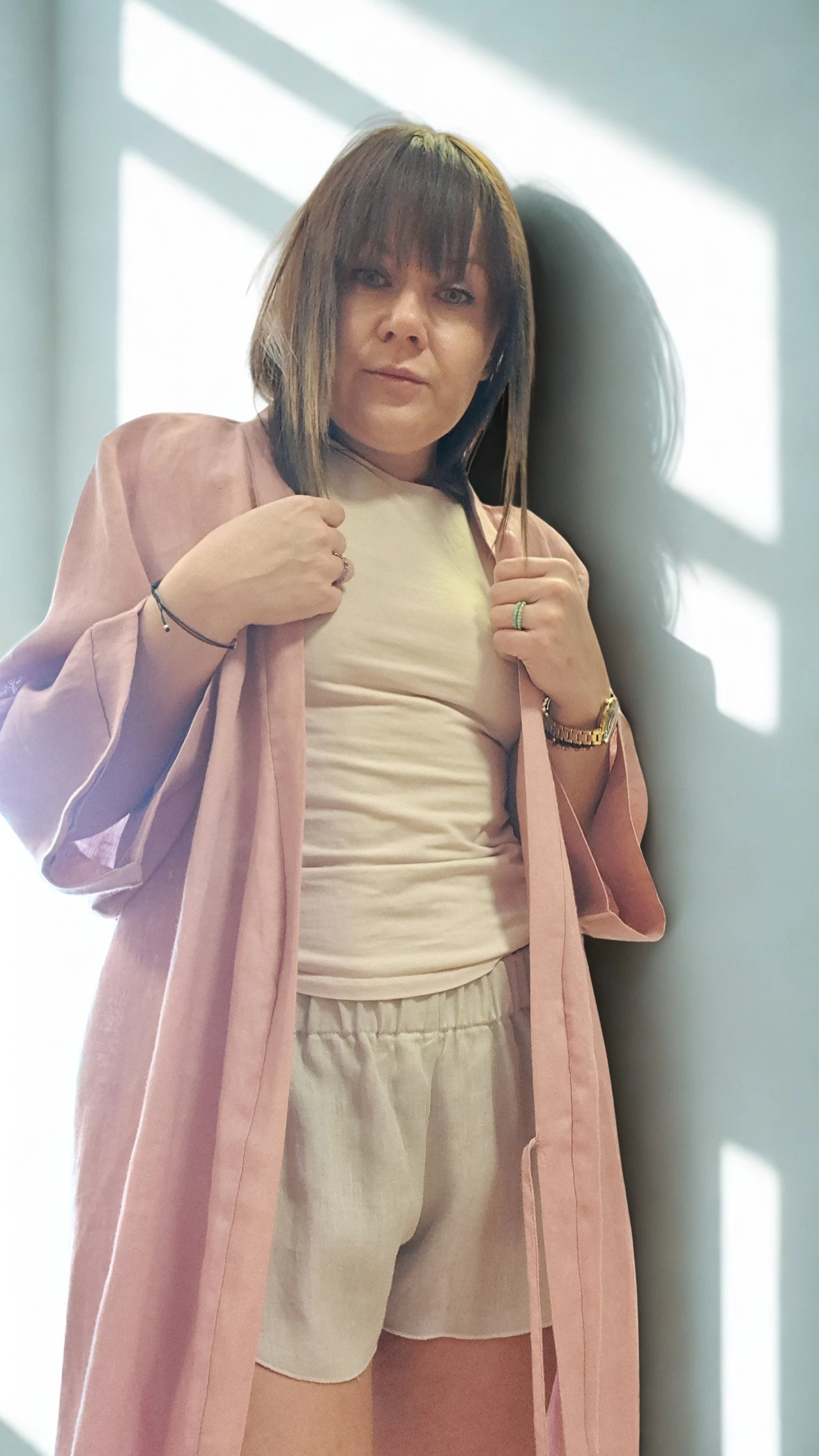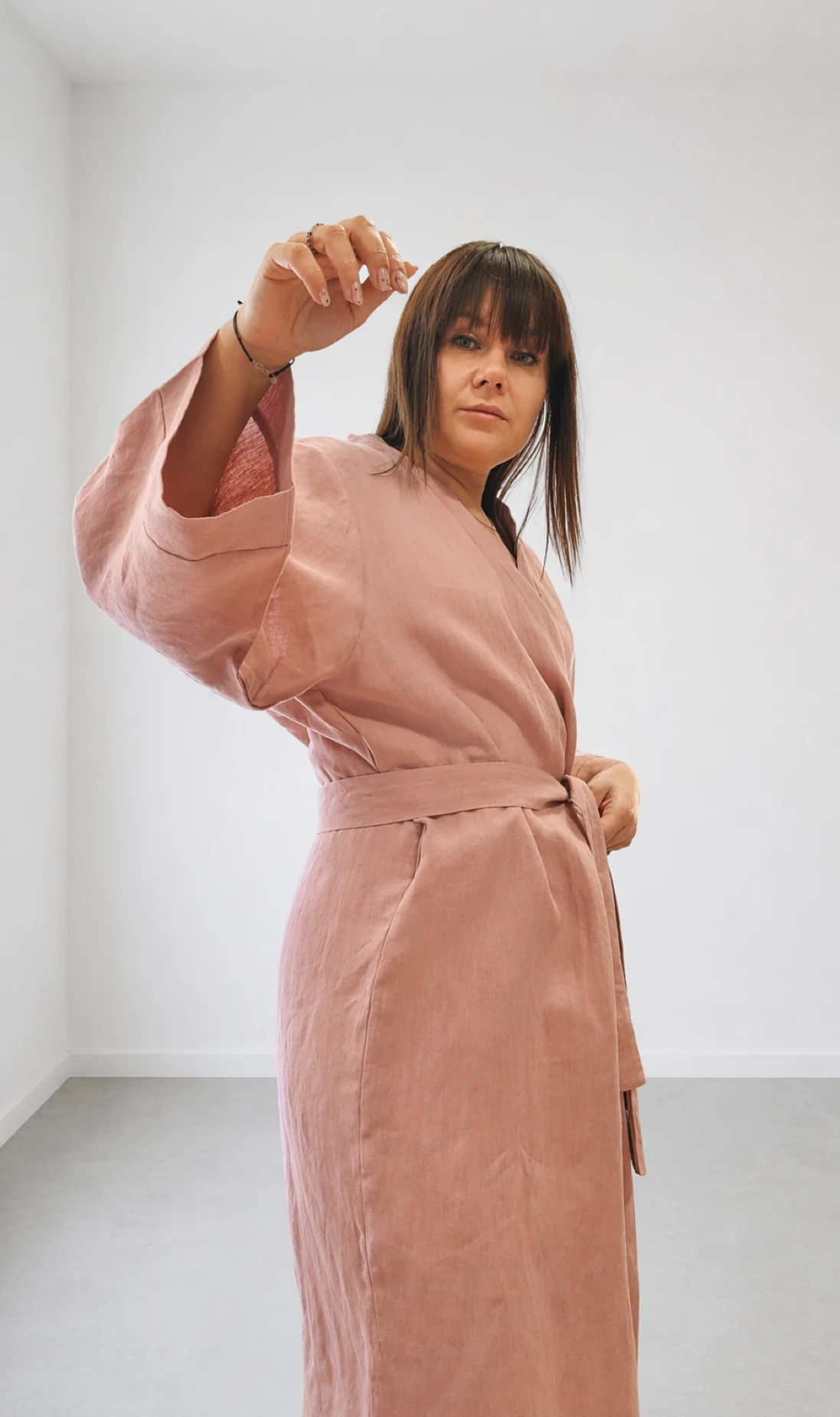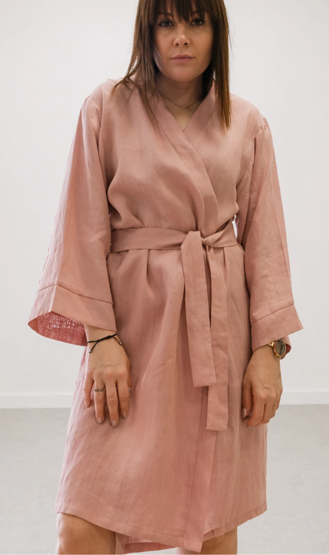 Lniany szlafrok midi RÓŻOWY