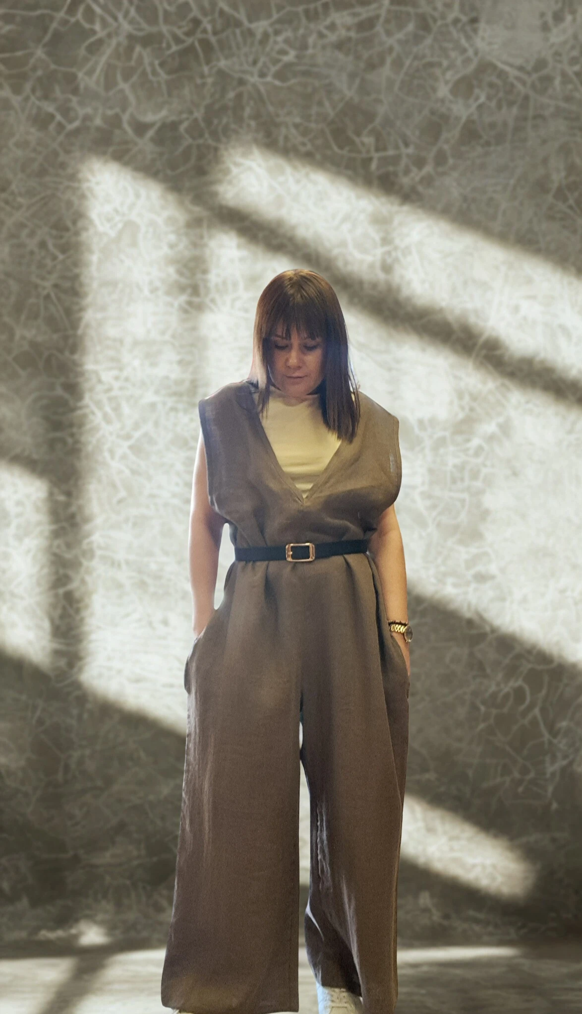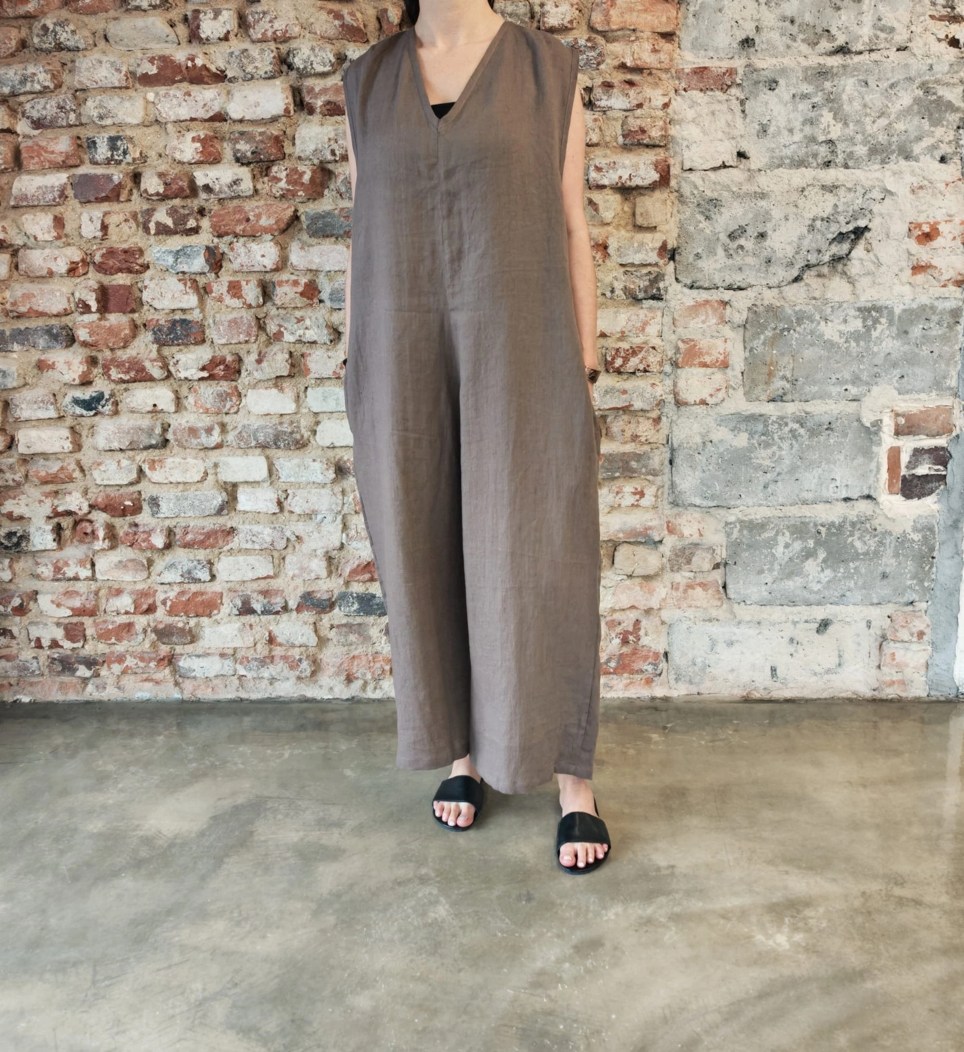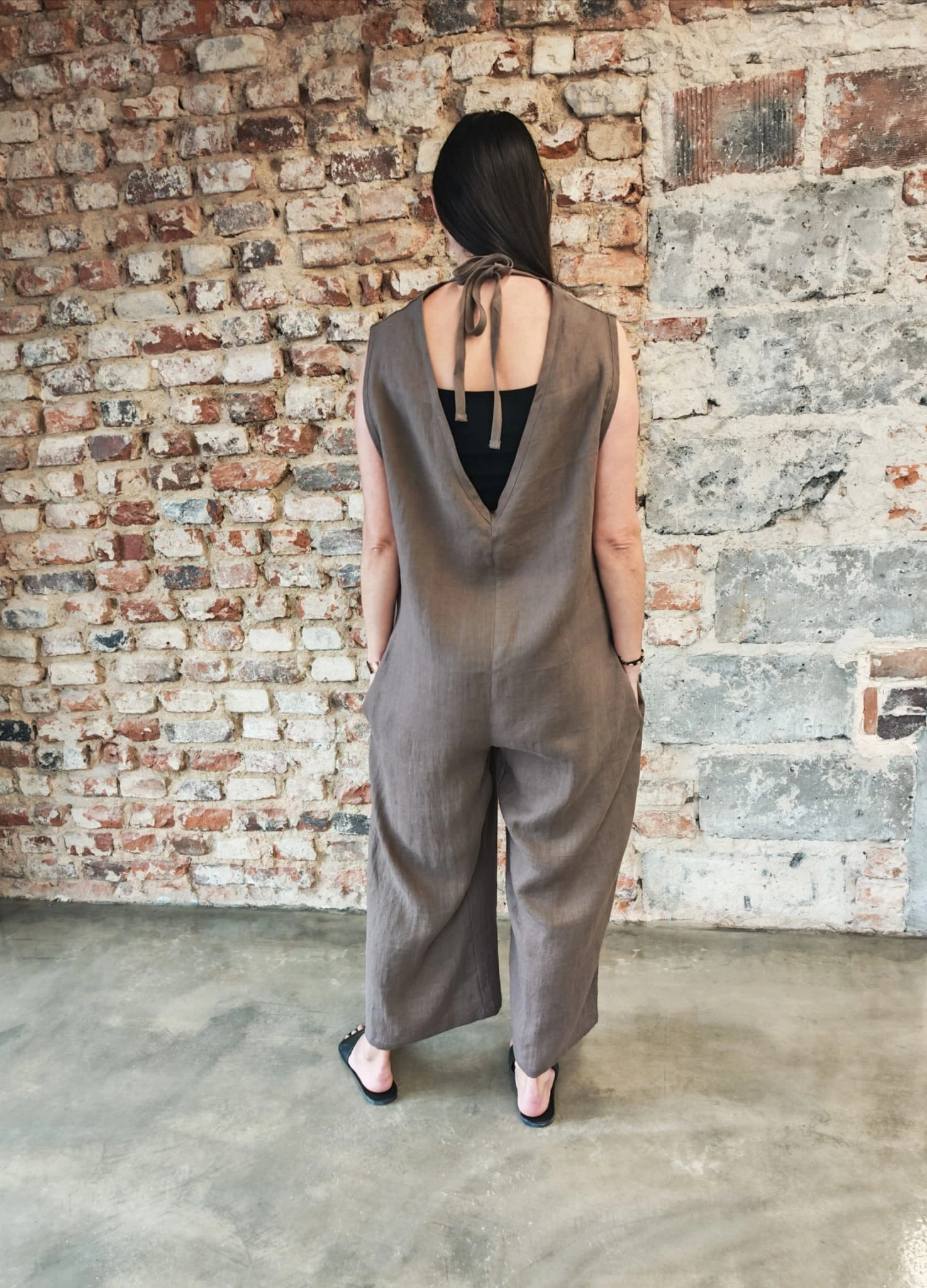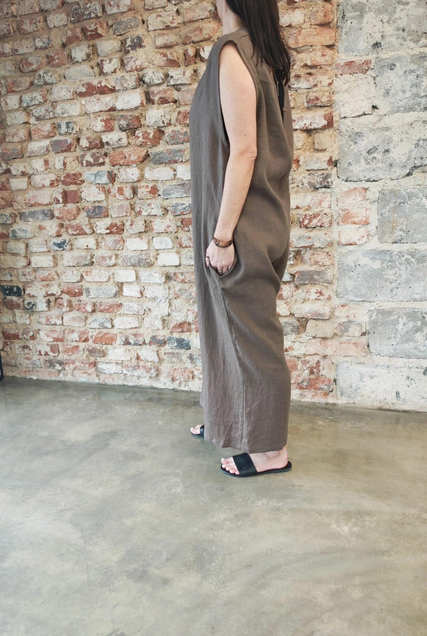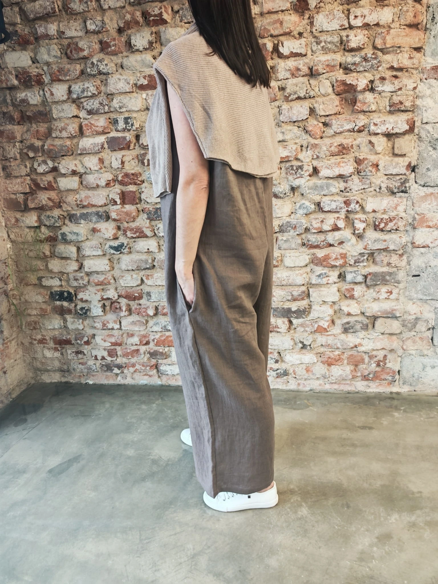 Ogrodniczki damskie 100% len- Oversize czekoladowy brąz