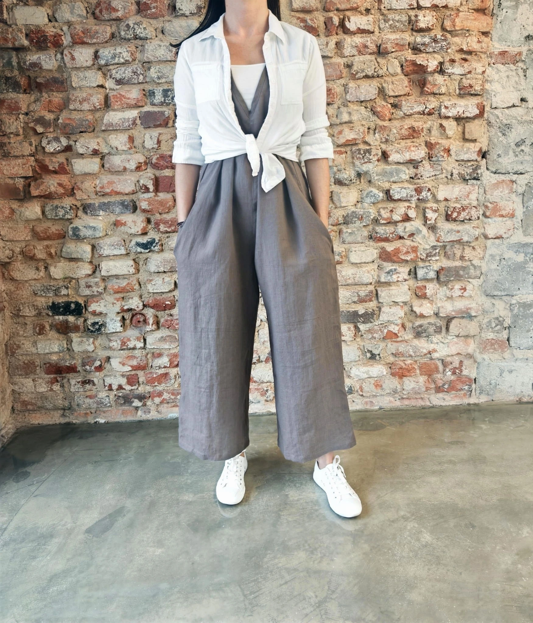 Naturalne, ponadczasowe i niezwykle komfortowe- ogrodniczki uszyte z wysokiej jakości 100% lnu o gramaturze 230 g, który pięknie układa się na sylwetce, jest przewiewny i trwały.
