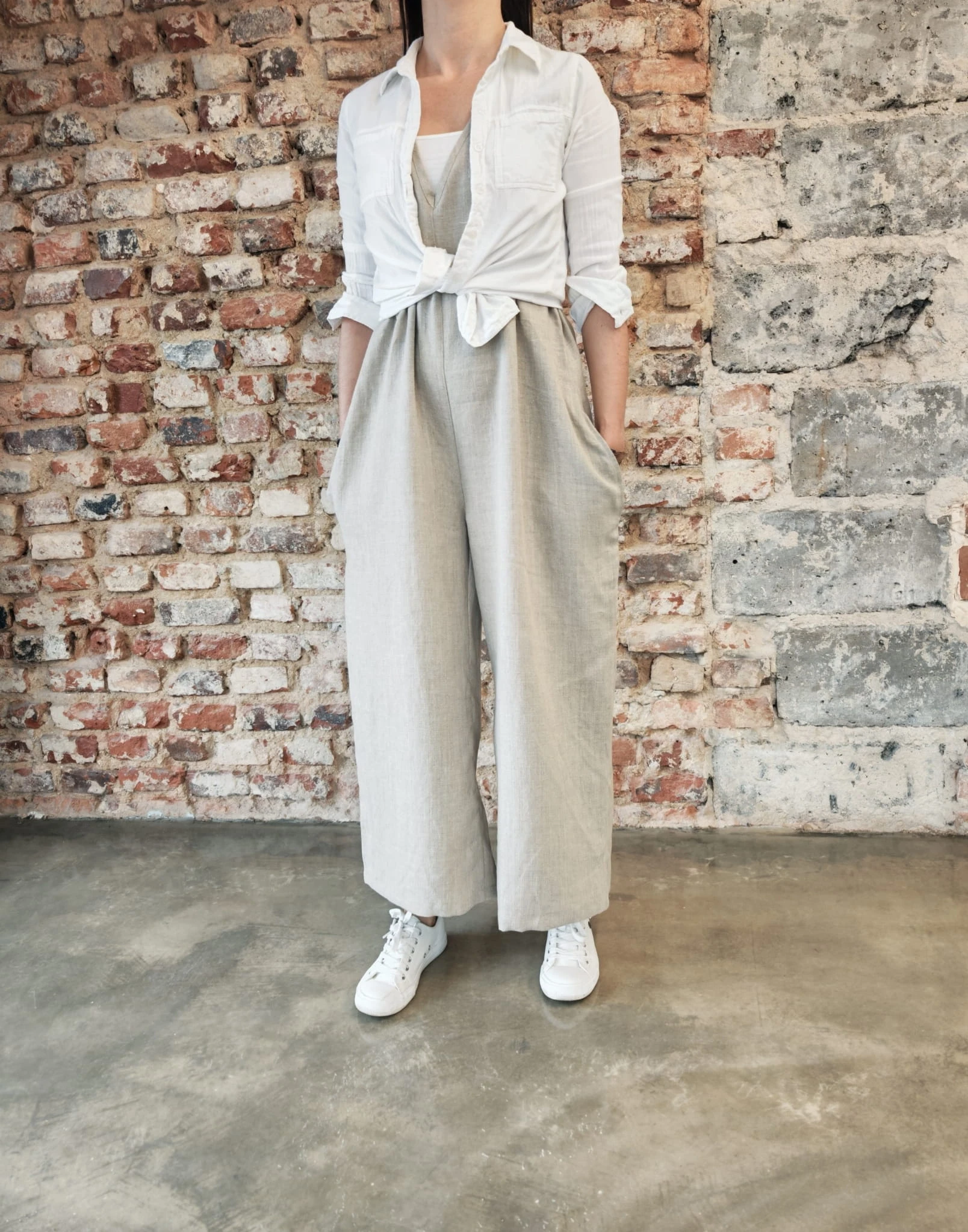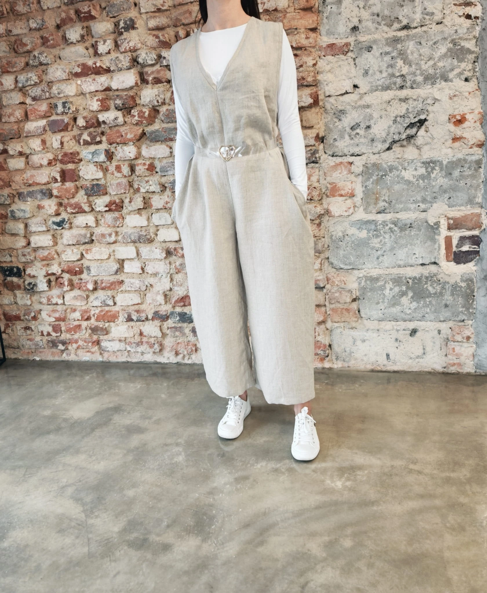 Naturalne, ponadczasowe i niezwykle komfortowe- ogrodniczki uszyte z wysokiej jakości 100% lnu o gramaturze 230 g, który pięknie układa się na sylwetce, jest przewiewny i trwały.