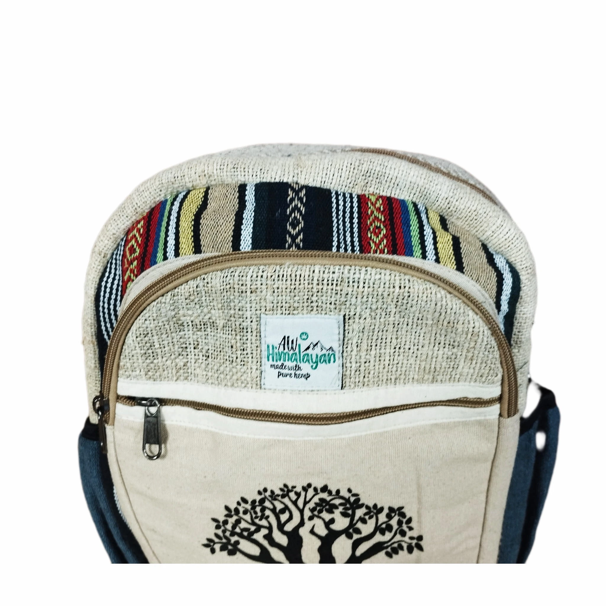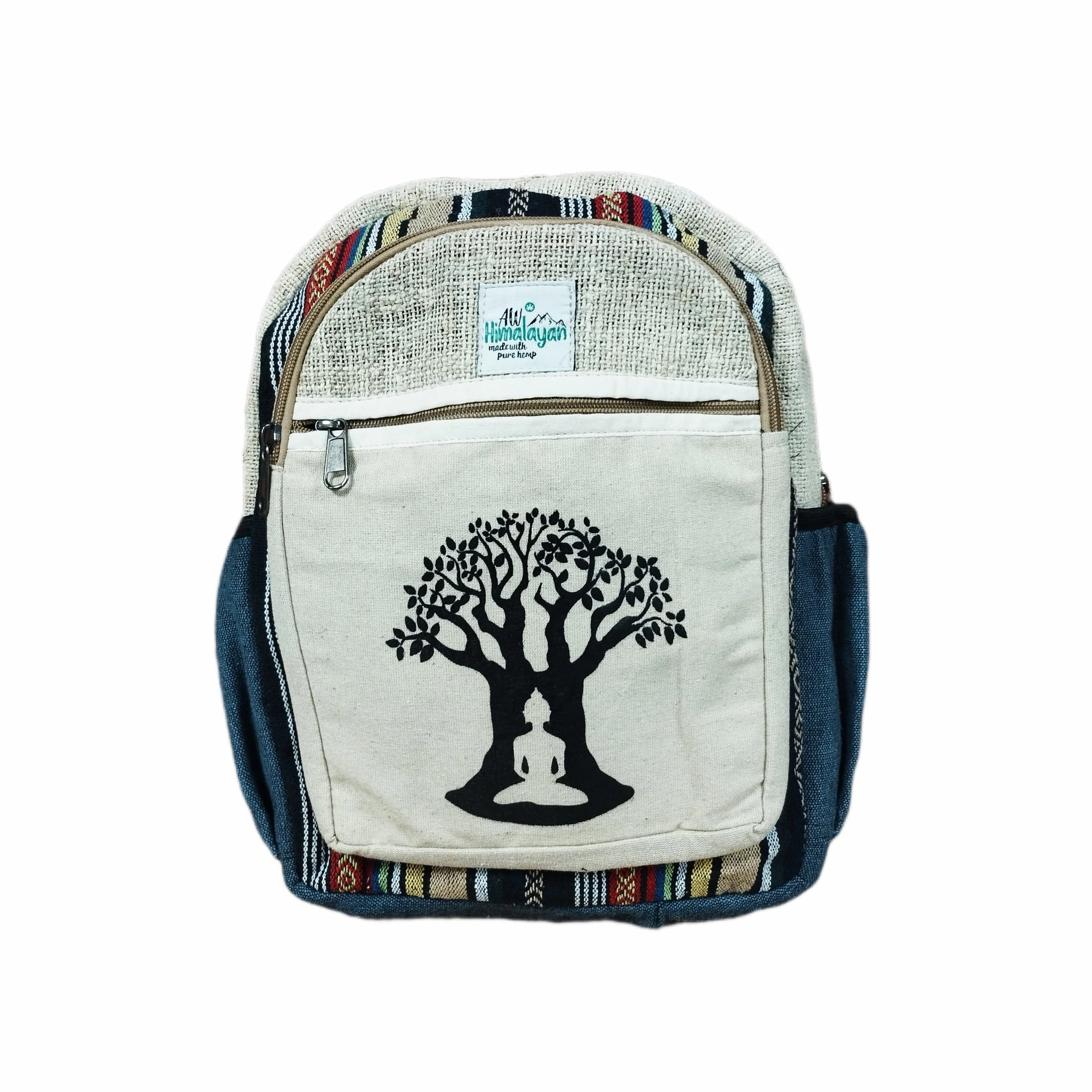 Średni plecak podróżny z konopi i bawełny, z zamkami błyskawicznymi i motywem Drzewa Bodi