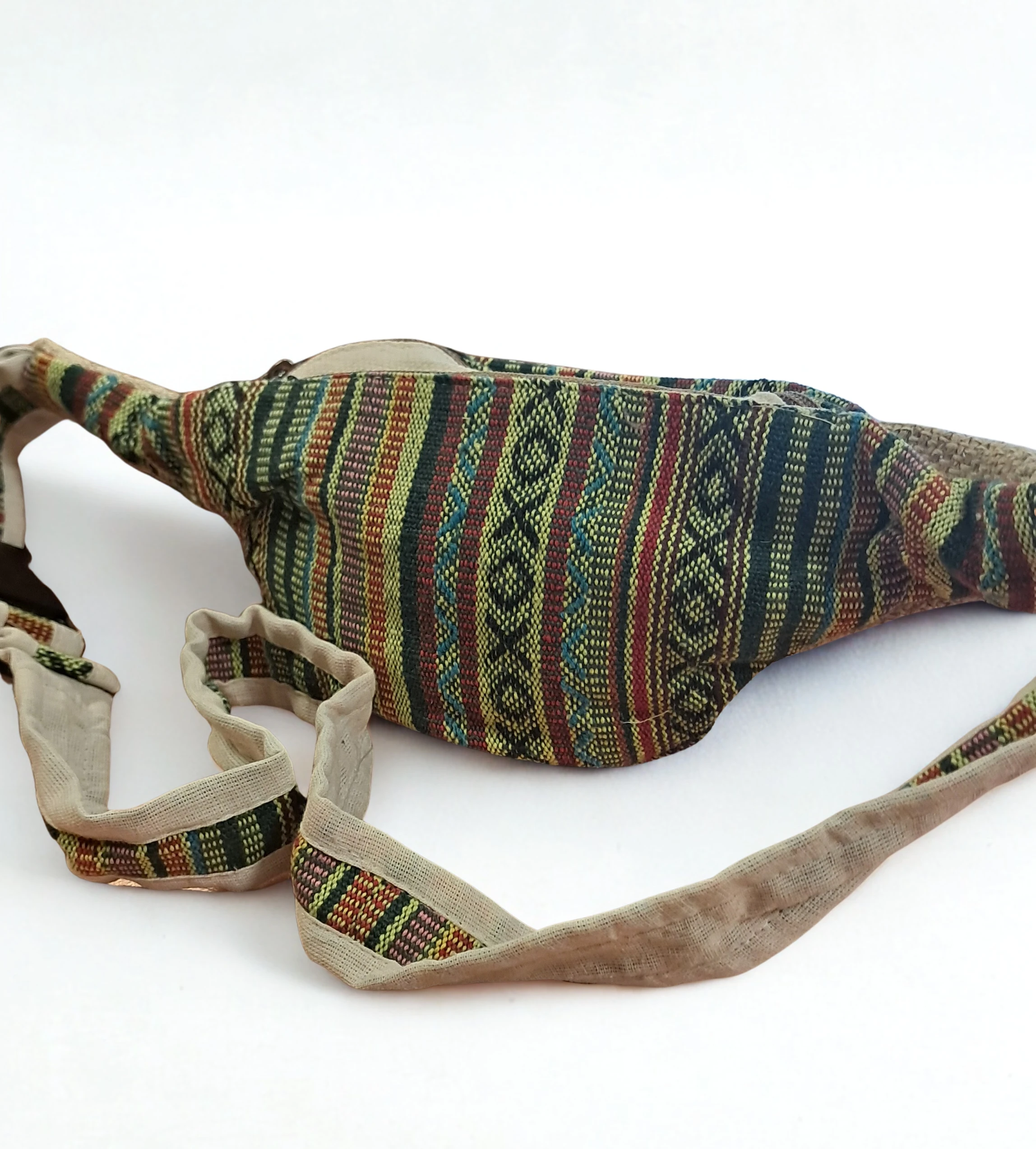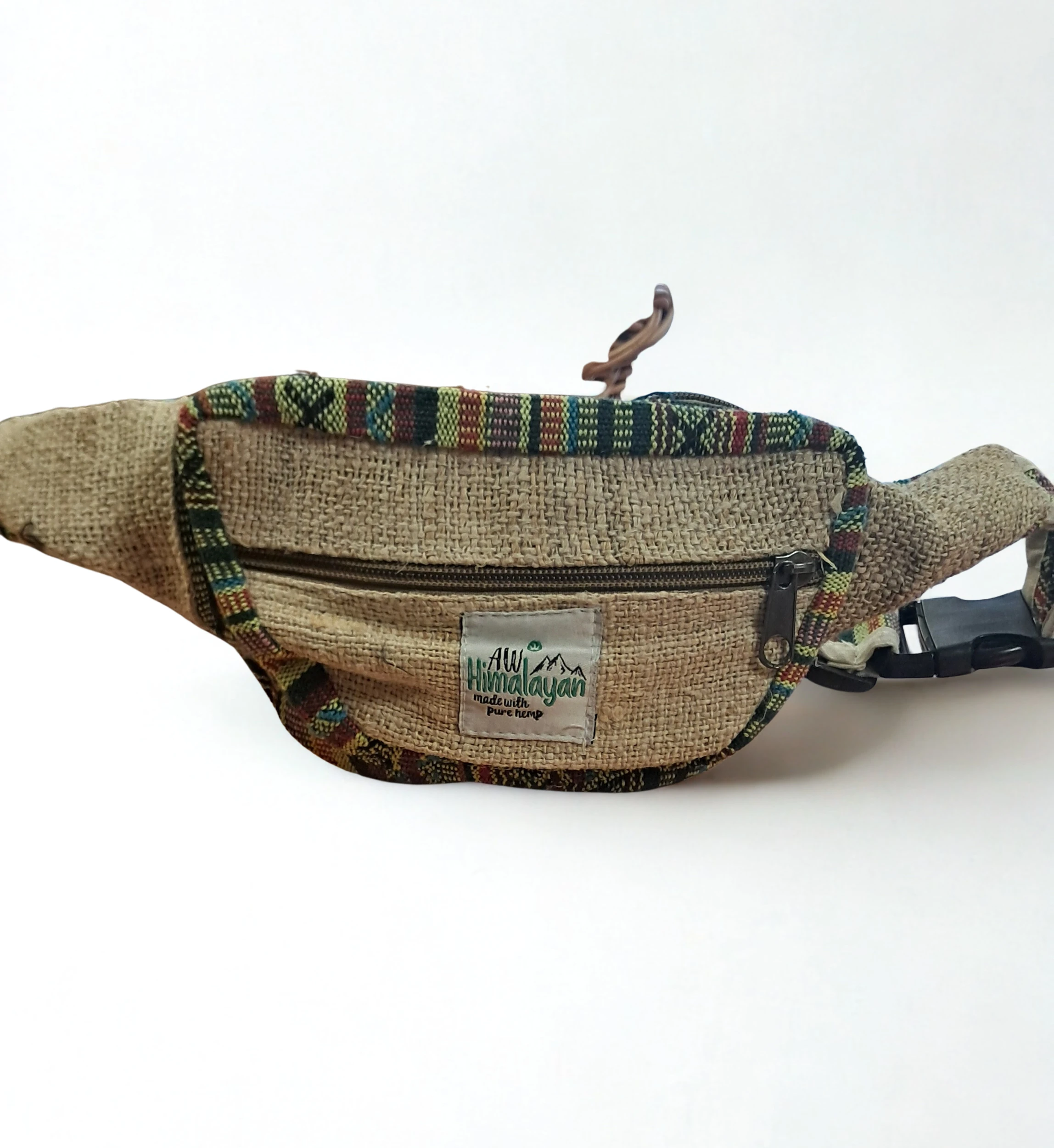 Saszetka na biodra z niezwykle wytrzymałego włókna konopno-bawełnianego. Posiada dużą ilość przegródek i kieszonek zapinanych na zamek błyskawiczny, co ma ogromny wpływ na bezpieczeństwo przedmiotów, które w niej schowamy. Prezentuje się ciekawie i kolorowo. Mimo niewielkiego rozmiaru, jest pojemna i praktyczna. Będzie świetnym kompanem na wycieczkach oraz podczas codziennych aktywności. Pasek posiada regulację rozmiaru. Wzór i kolorystka toreb jest bardzo różnorodna, dlatego wybrana torba może się jeszcze nieco różnić od prezentowanych na zdjęciach.