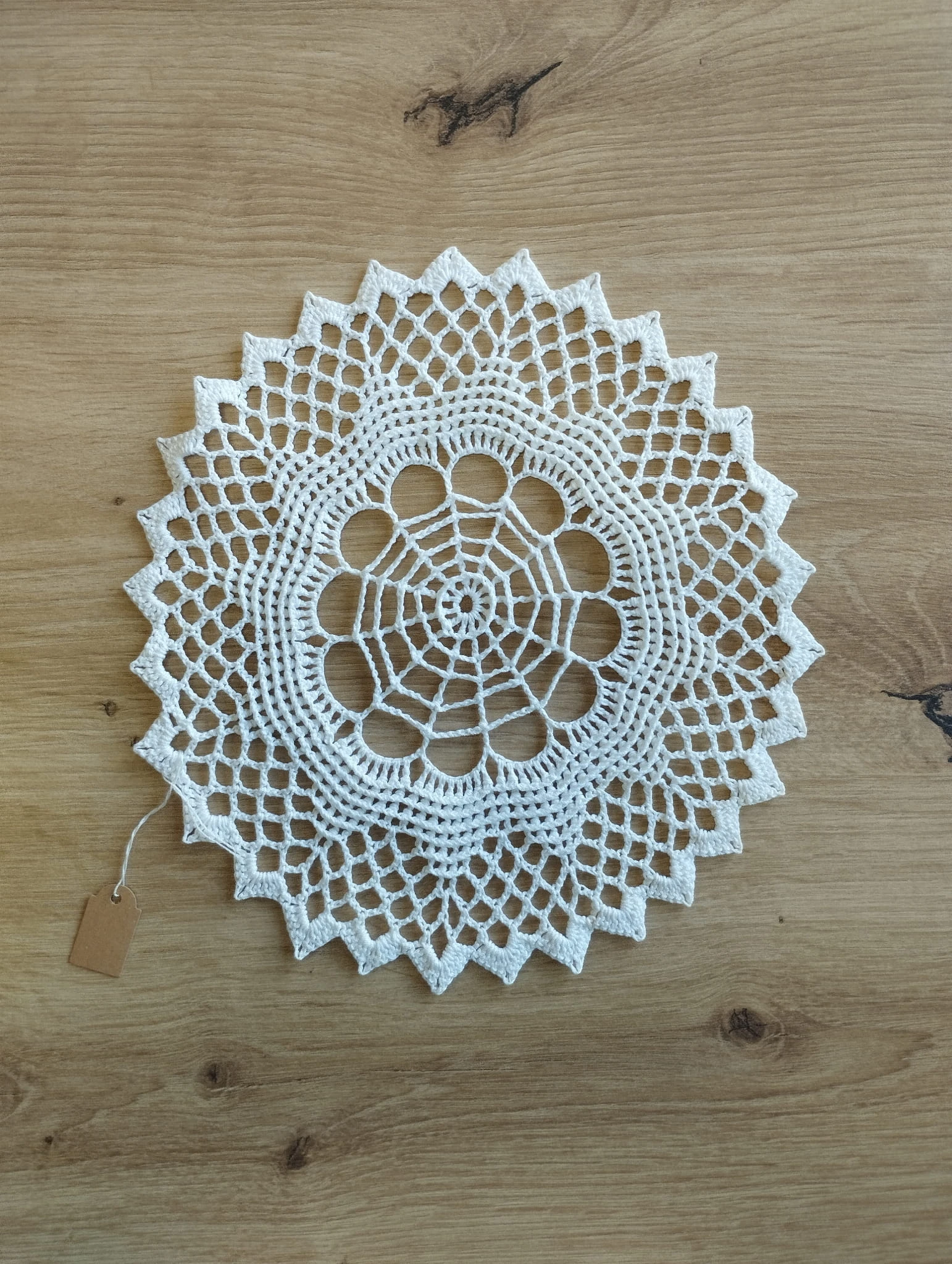Piękna serwetka ręcznie wykonana z nici bawełnianej, o średnicy 21 cm