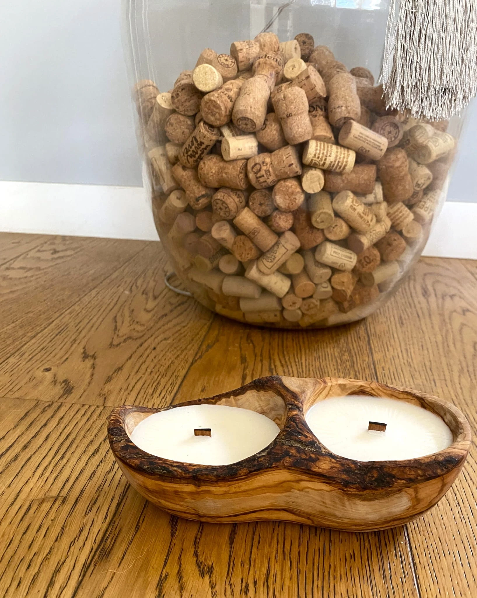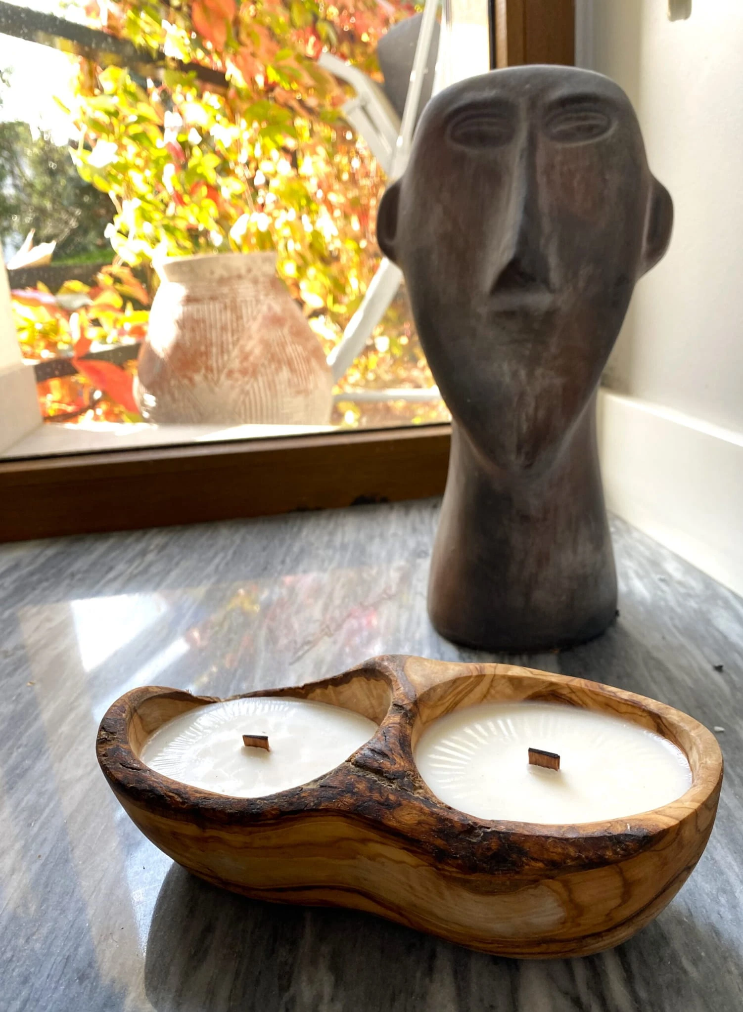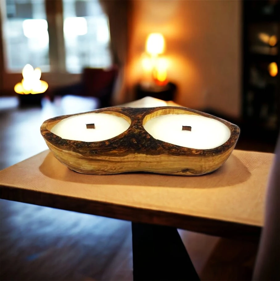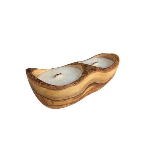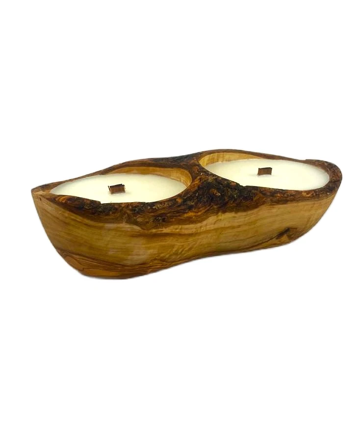 Podłużna świeca 2 sekwencje w drewnie oliwnym o długości 23 cm. Świeca posiada drewniane knoty, które podczas spalania iskrzą, tworząc magiczną atmosferę.