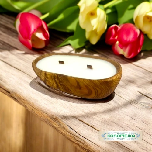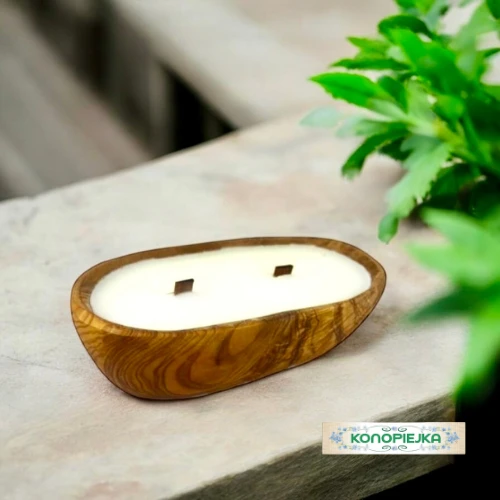 NOWOŚĆ – świeca w drewnie z 2 knotami