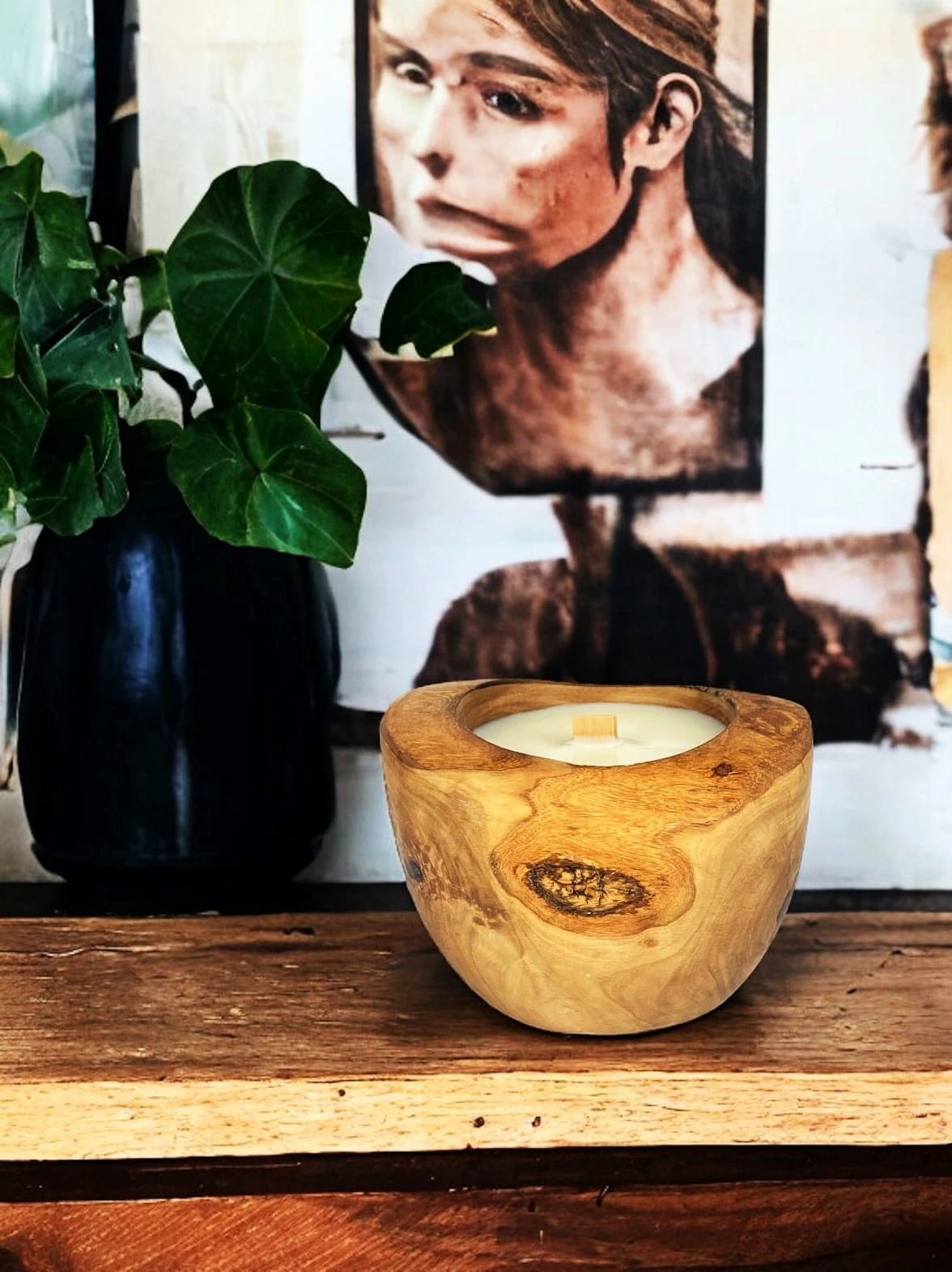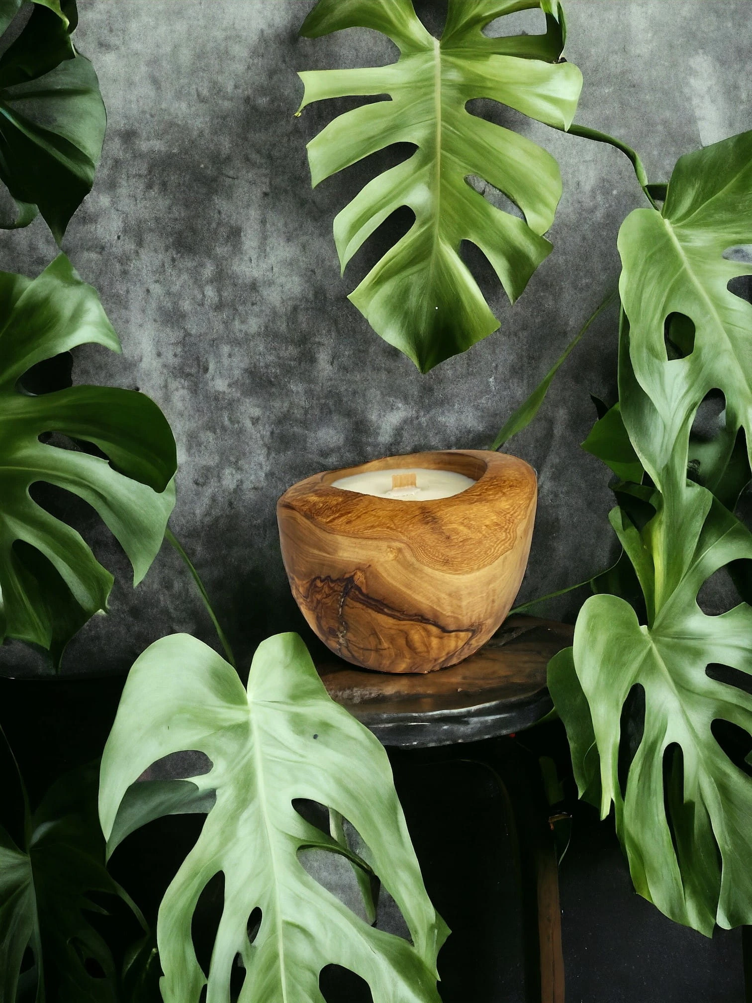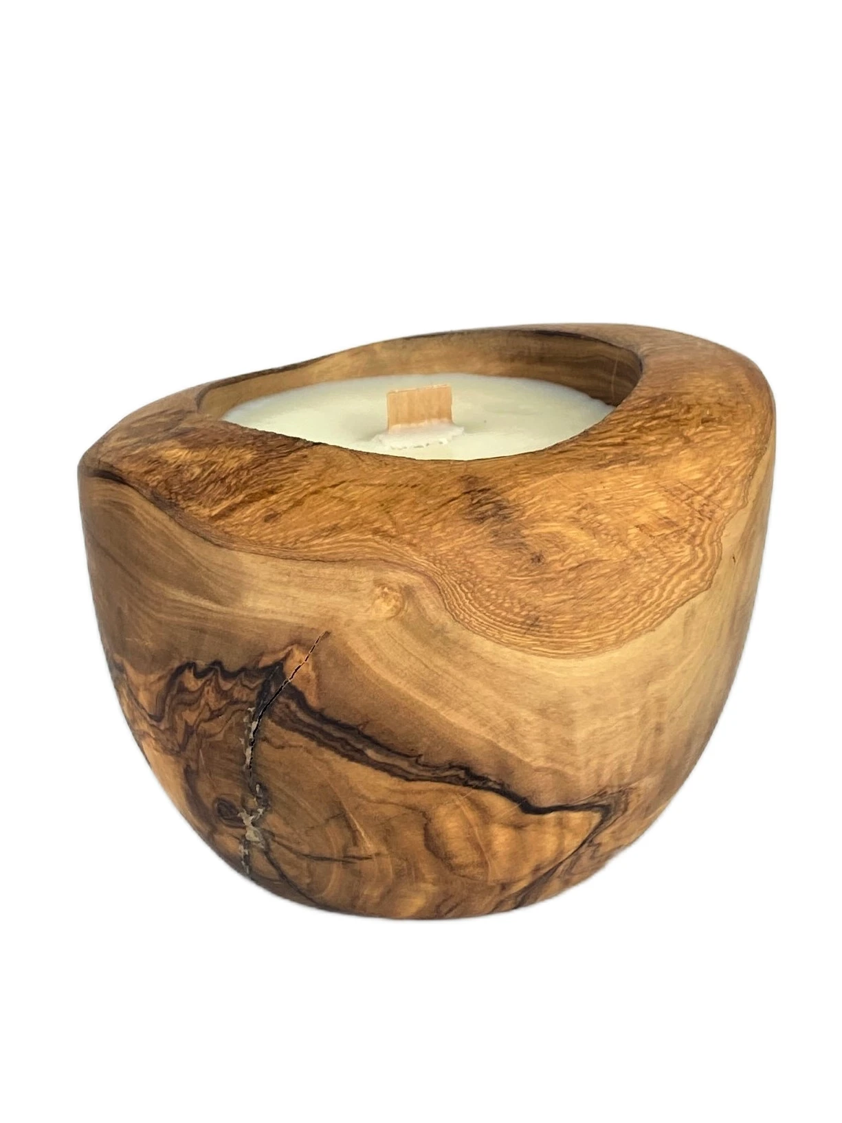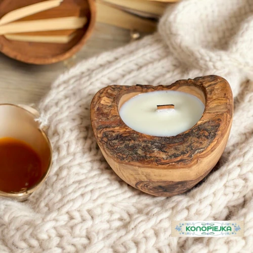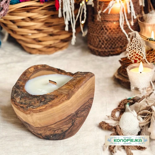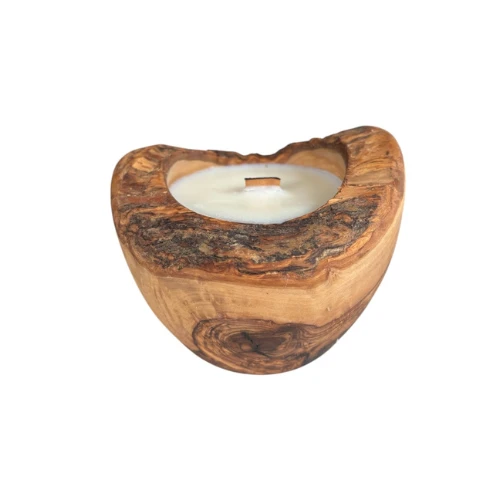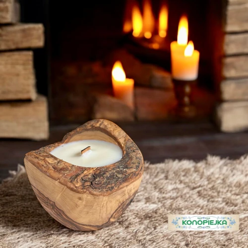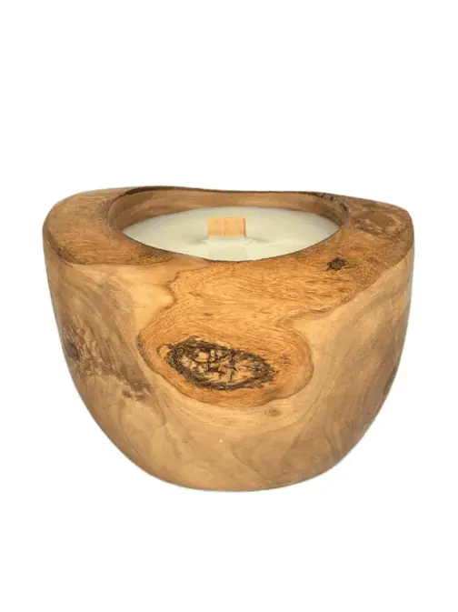 Okragła świeca w drewnie oliwnym o średnicy 12 cm. Świeca posiada drewniane knoty, które podczas spalania iskrzą, tworząc magiczną atmosferę.